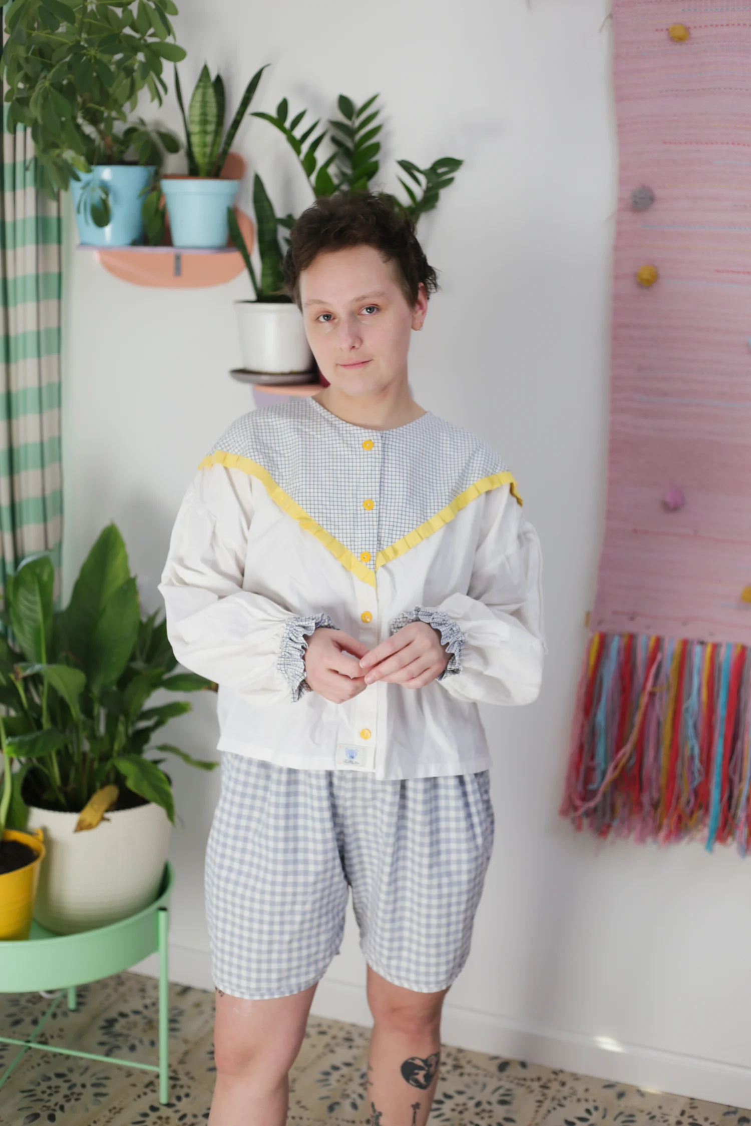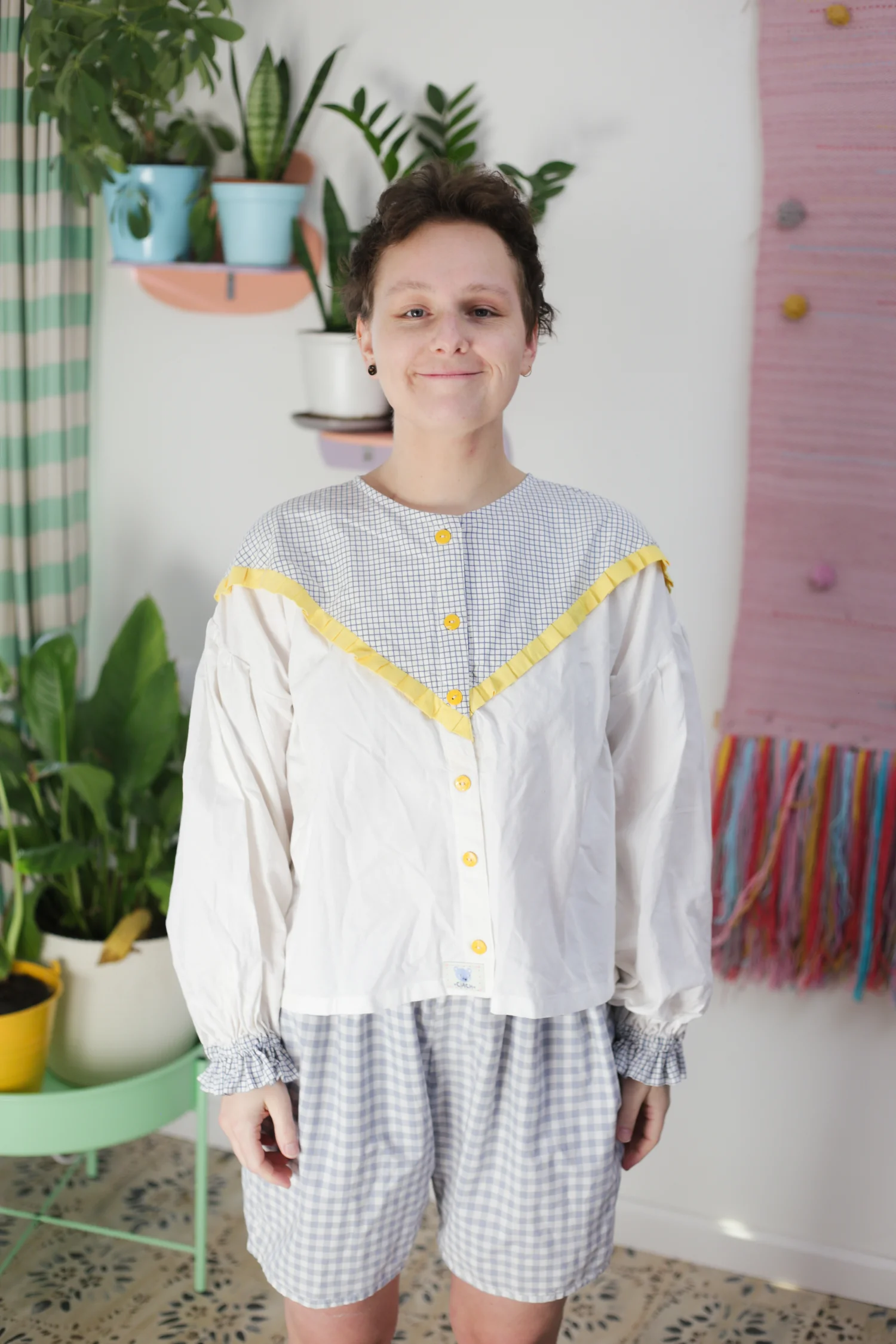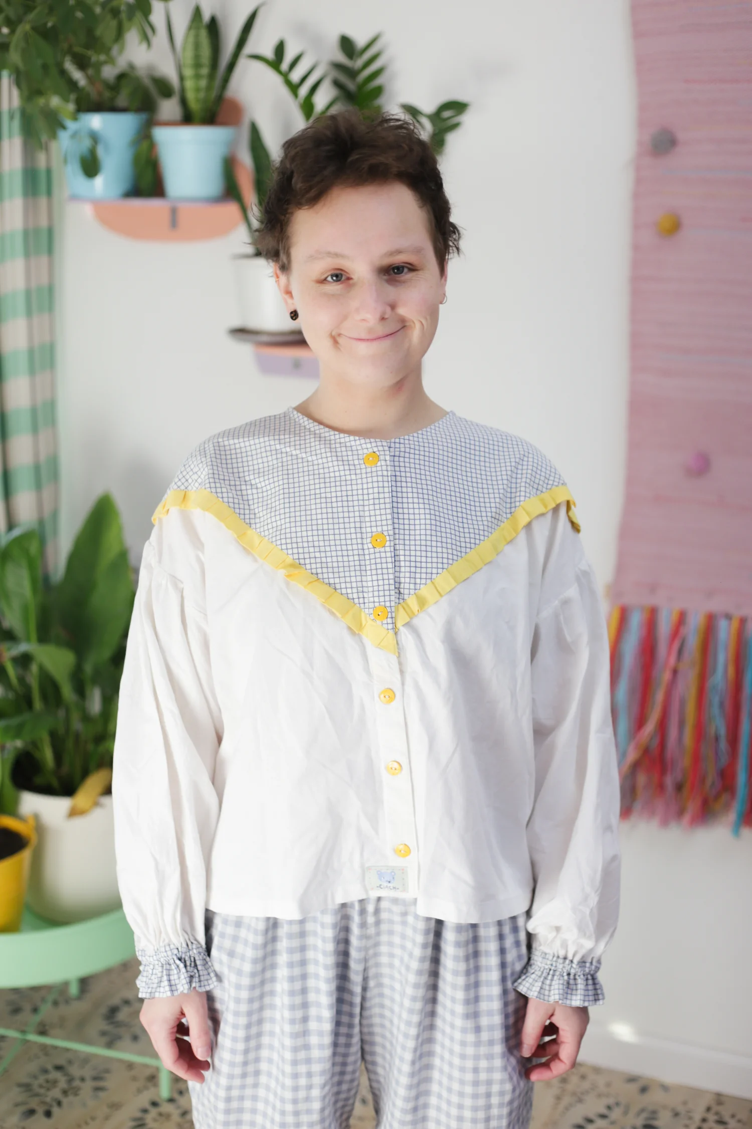 Koszula szyta przez moją mamę z materiałów z drugiego obiegu.