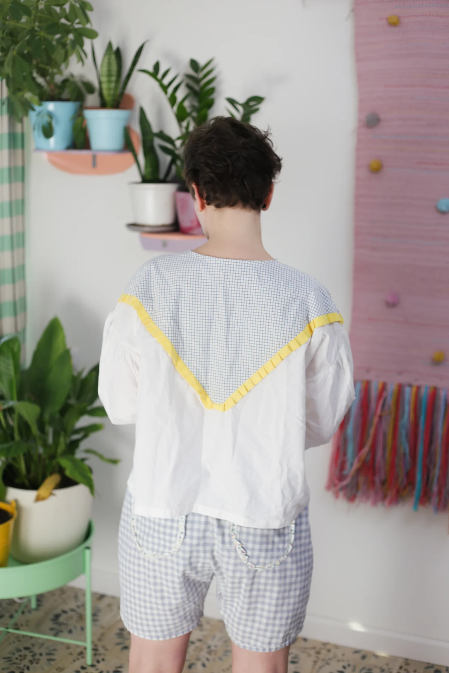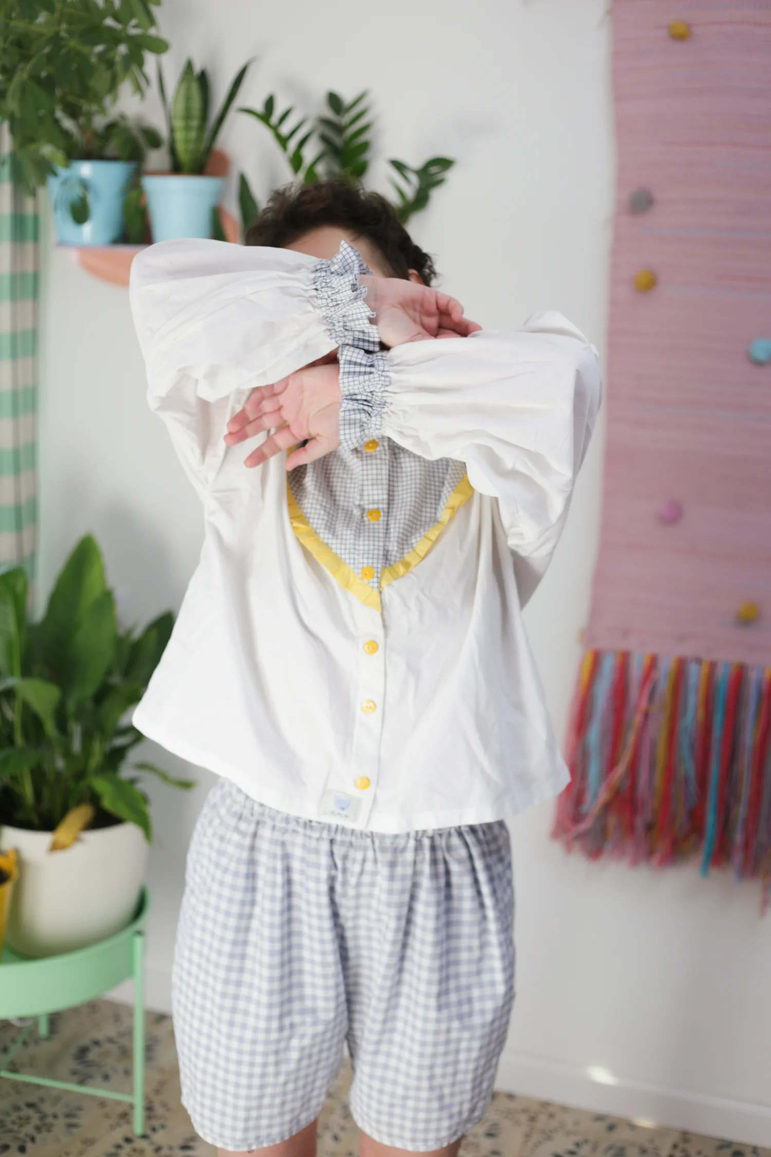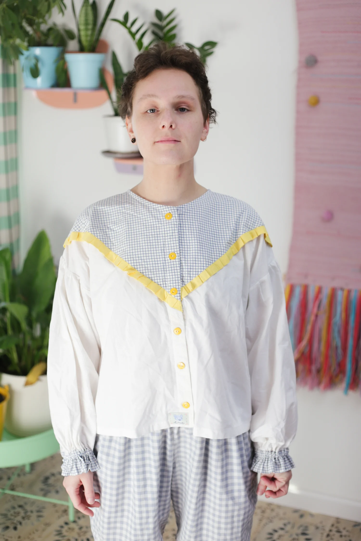 Koszula szyta przez moją mamę z materiałów z drugiego obiegu.