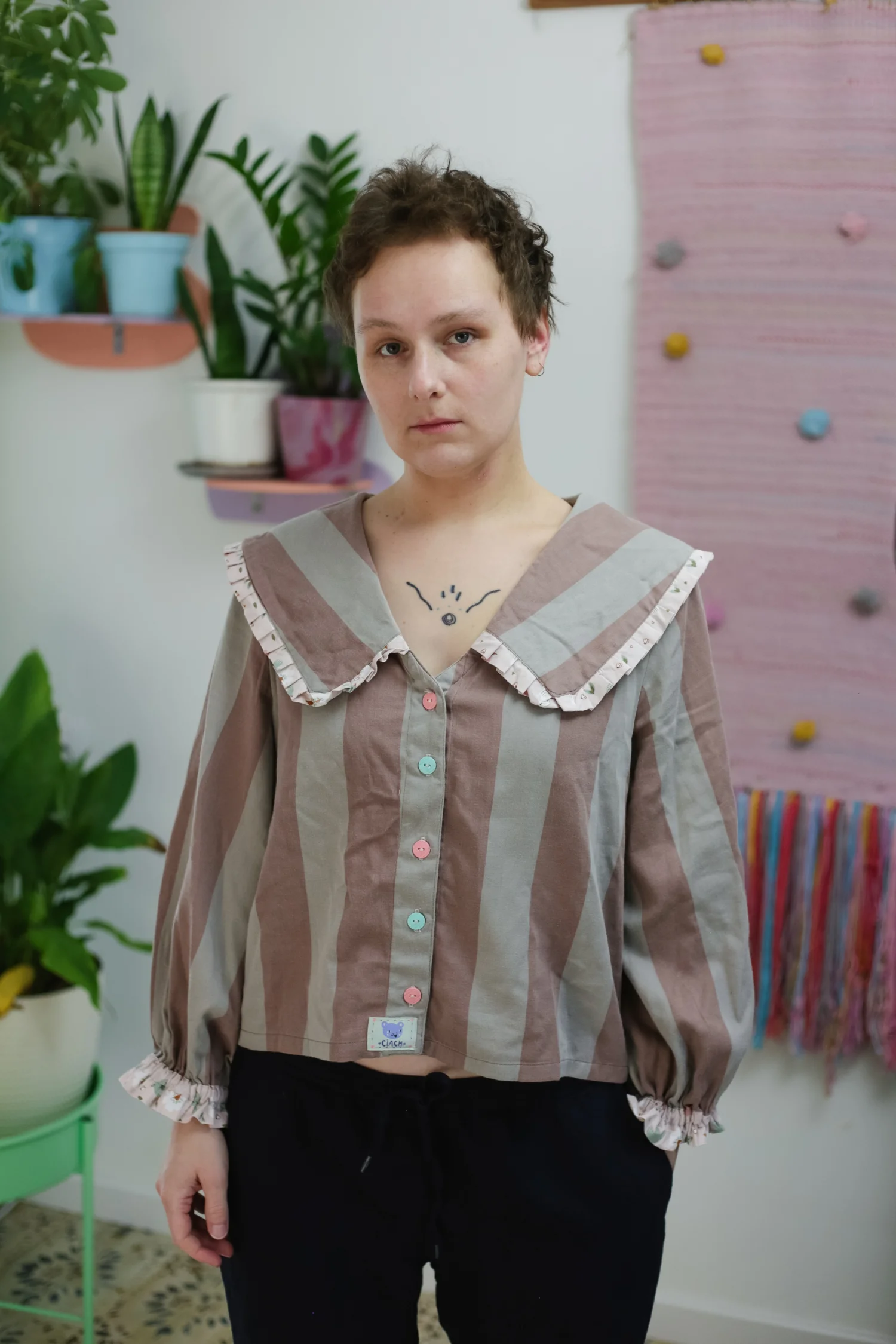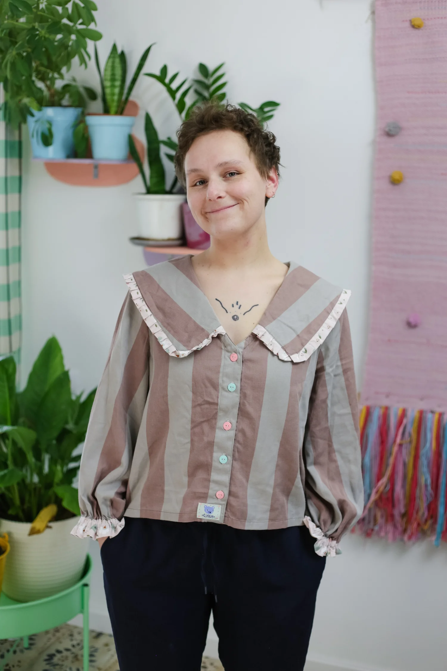 Koszula szyta przez moją mamę z materiałów z drugiego obiegu.