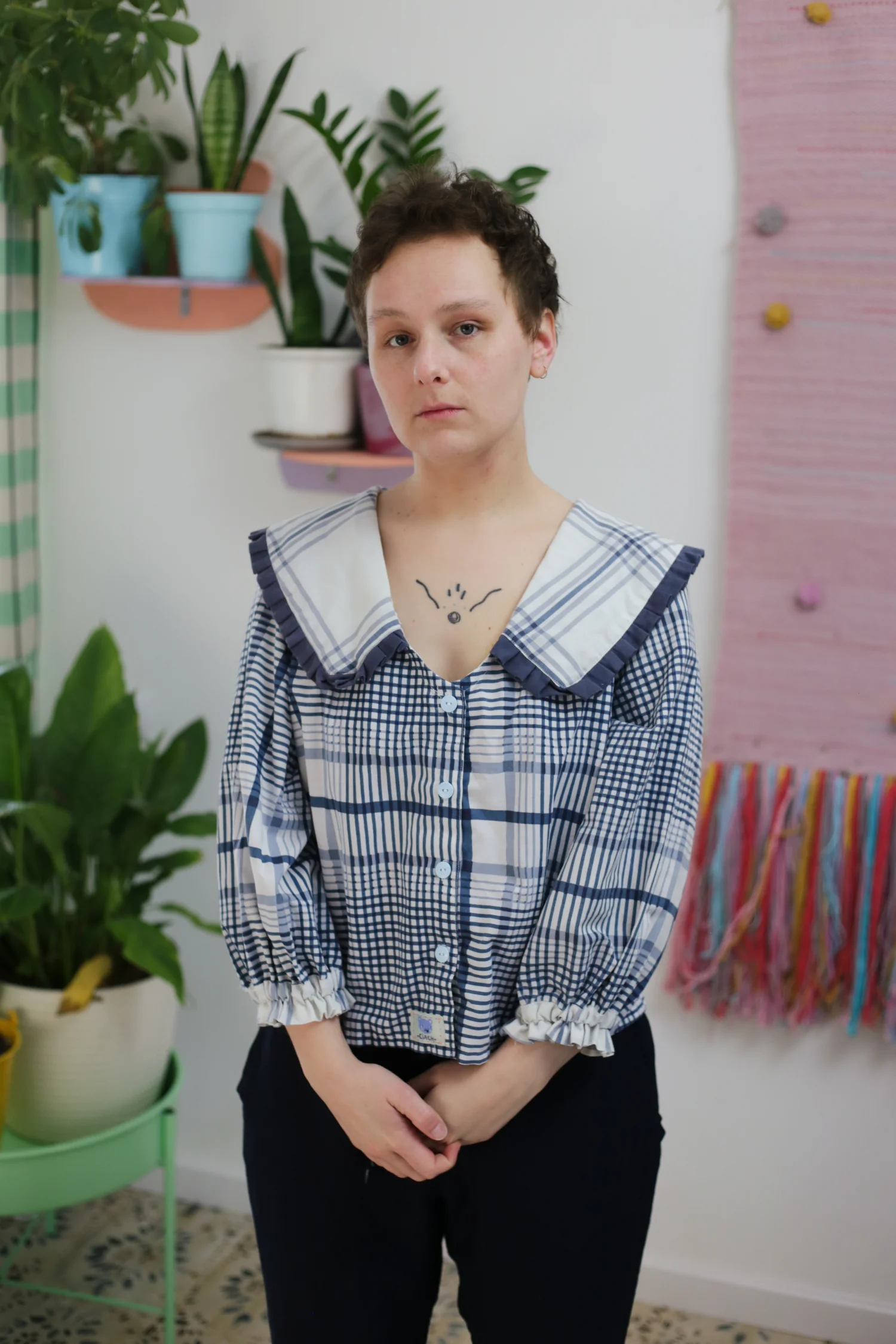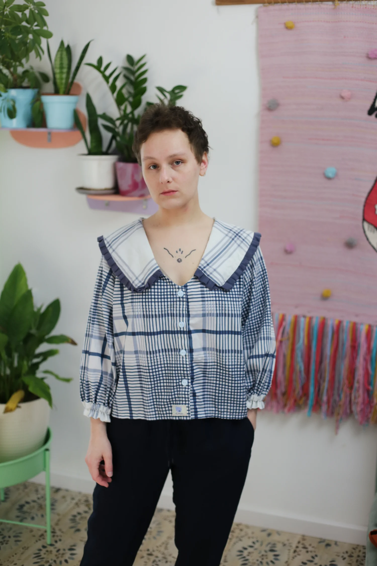 Koszula szyta przez moją mamę z materiałów z drugiego obiegu.