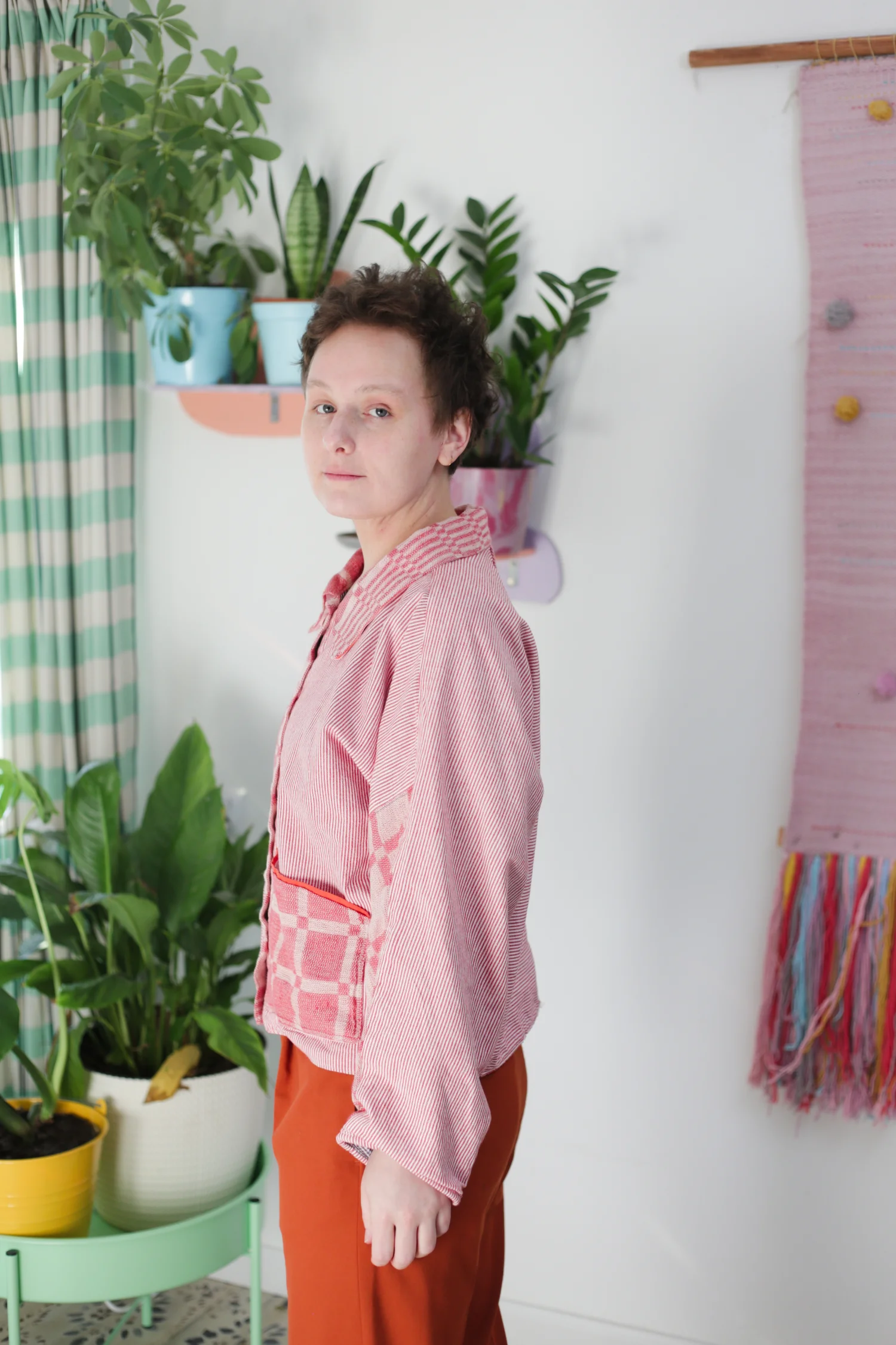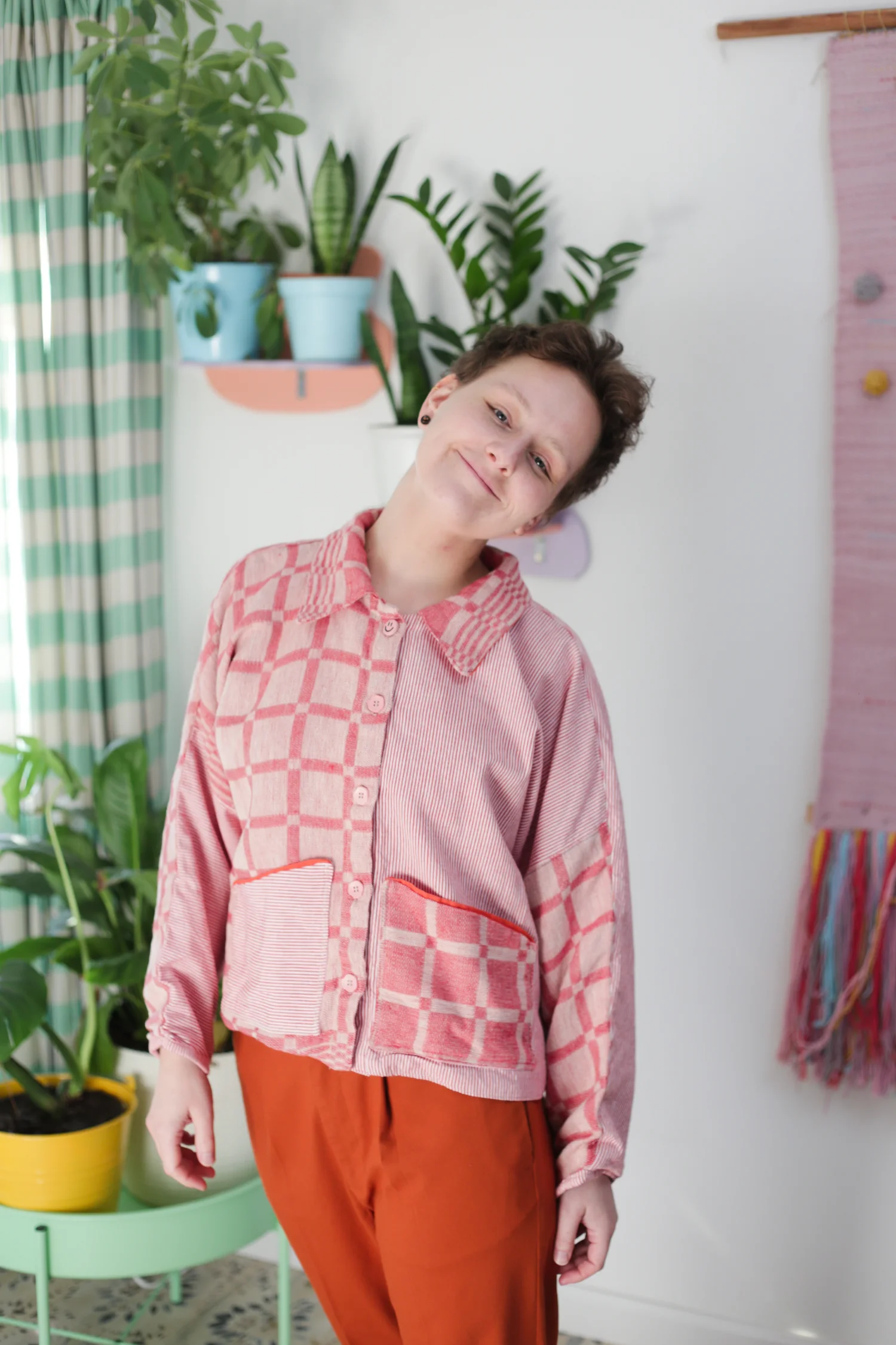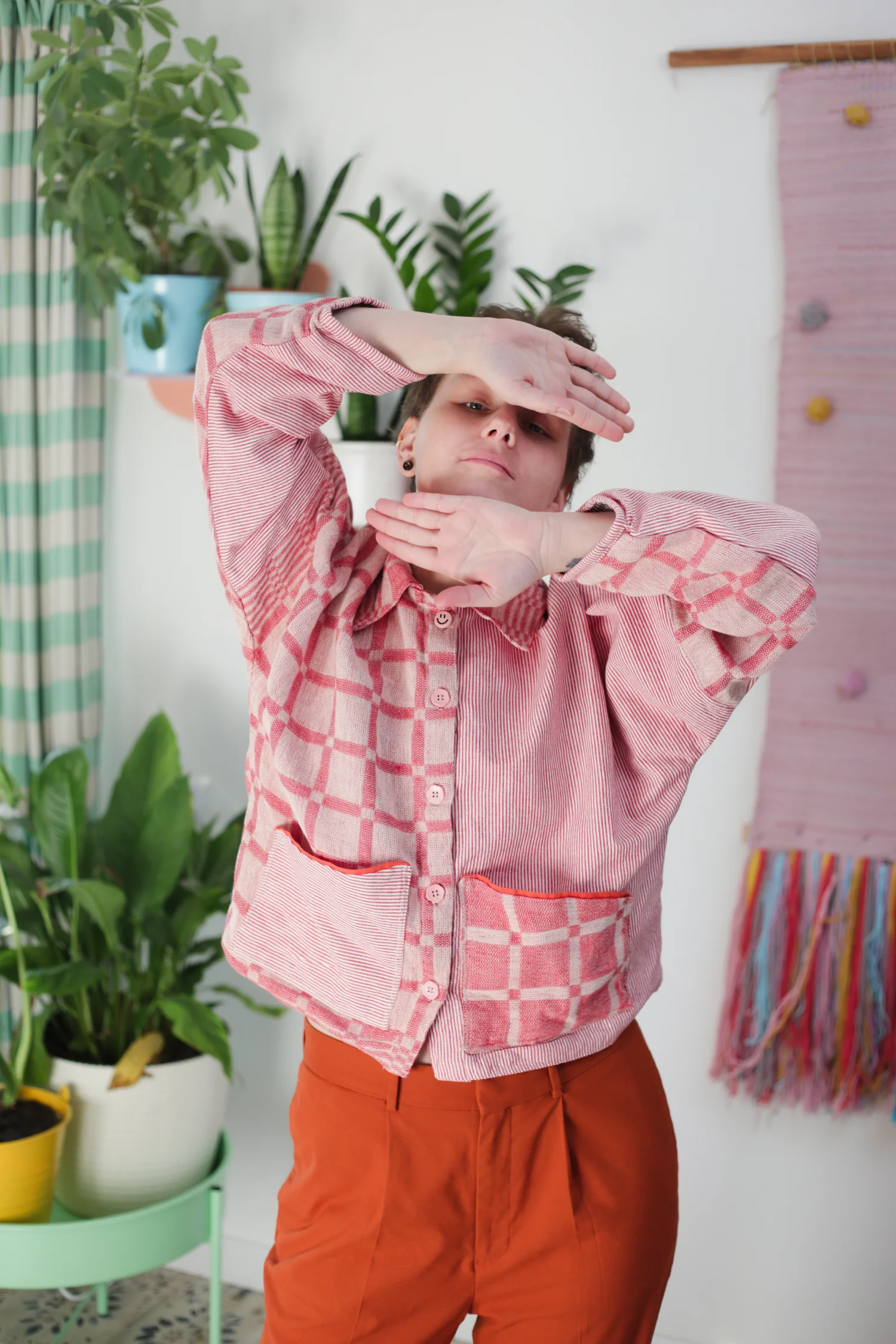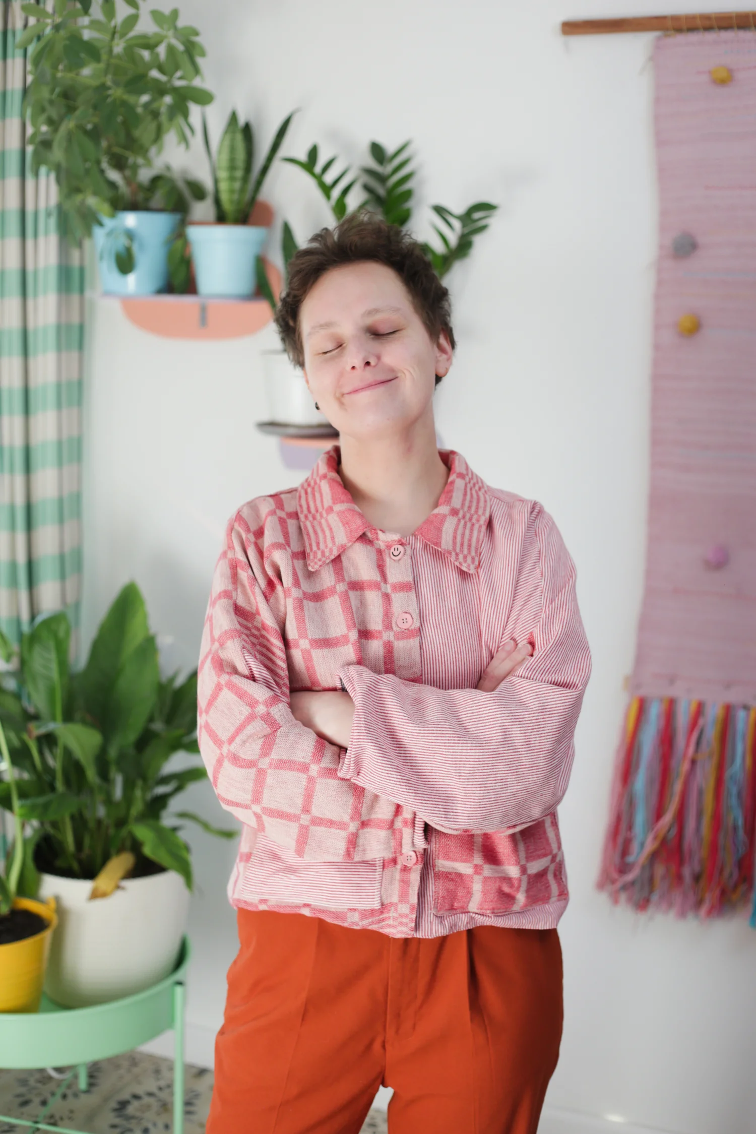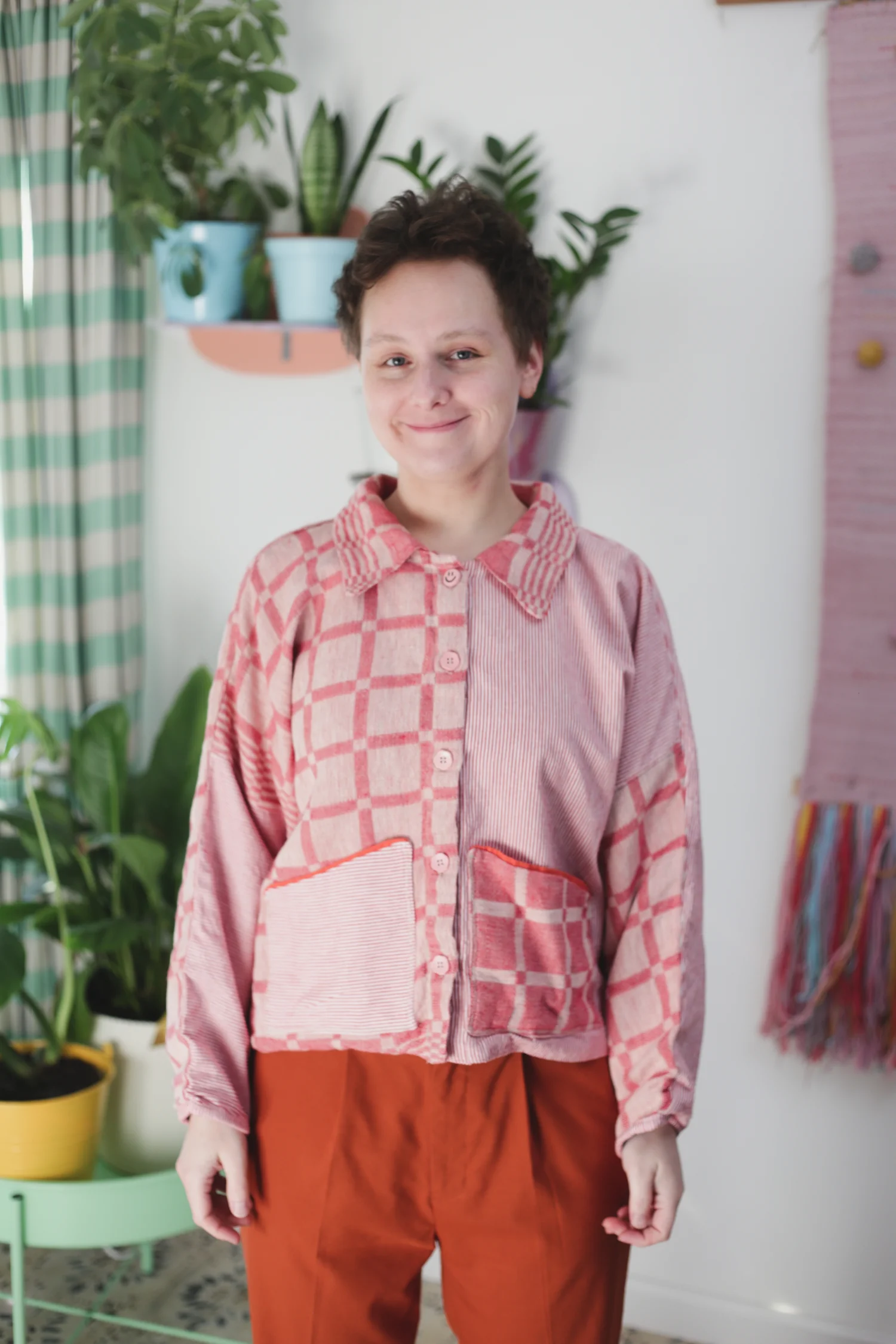 Kurtka z materiału z drugiego obiegu. Ma cienką podszewkę. Pasuje zarówno na rozmiar S jako oversize oraz na L :)