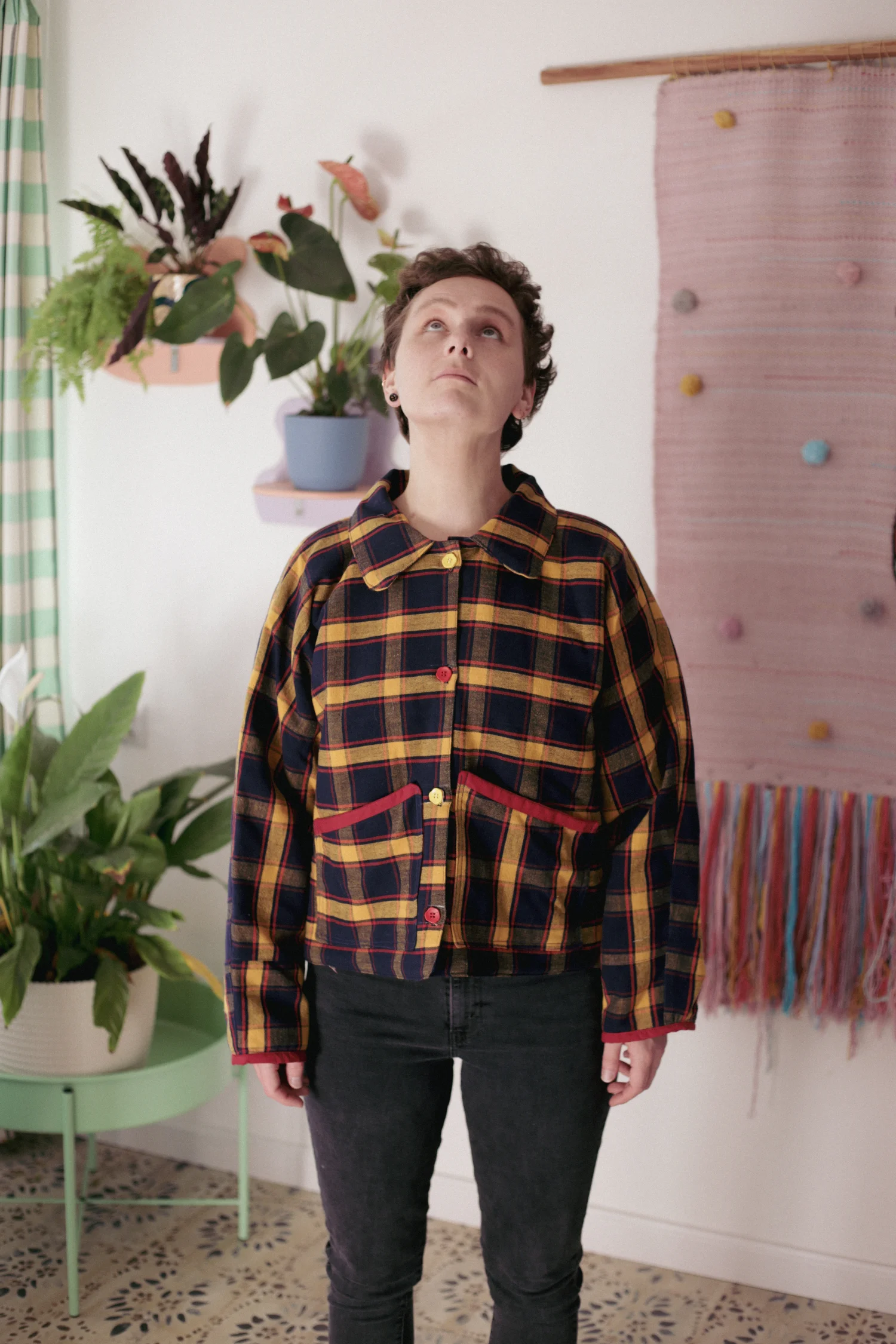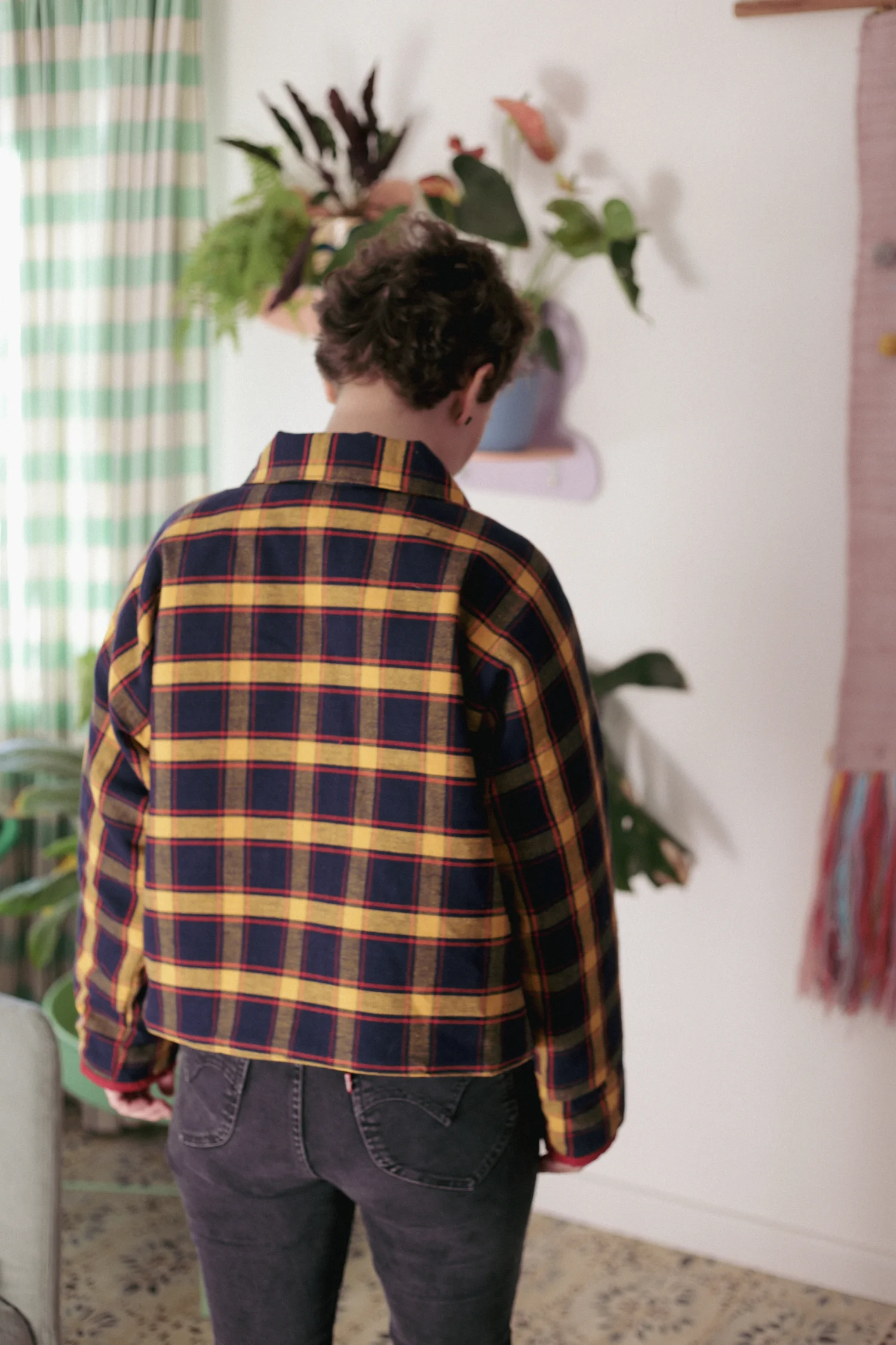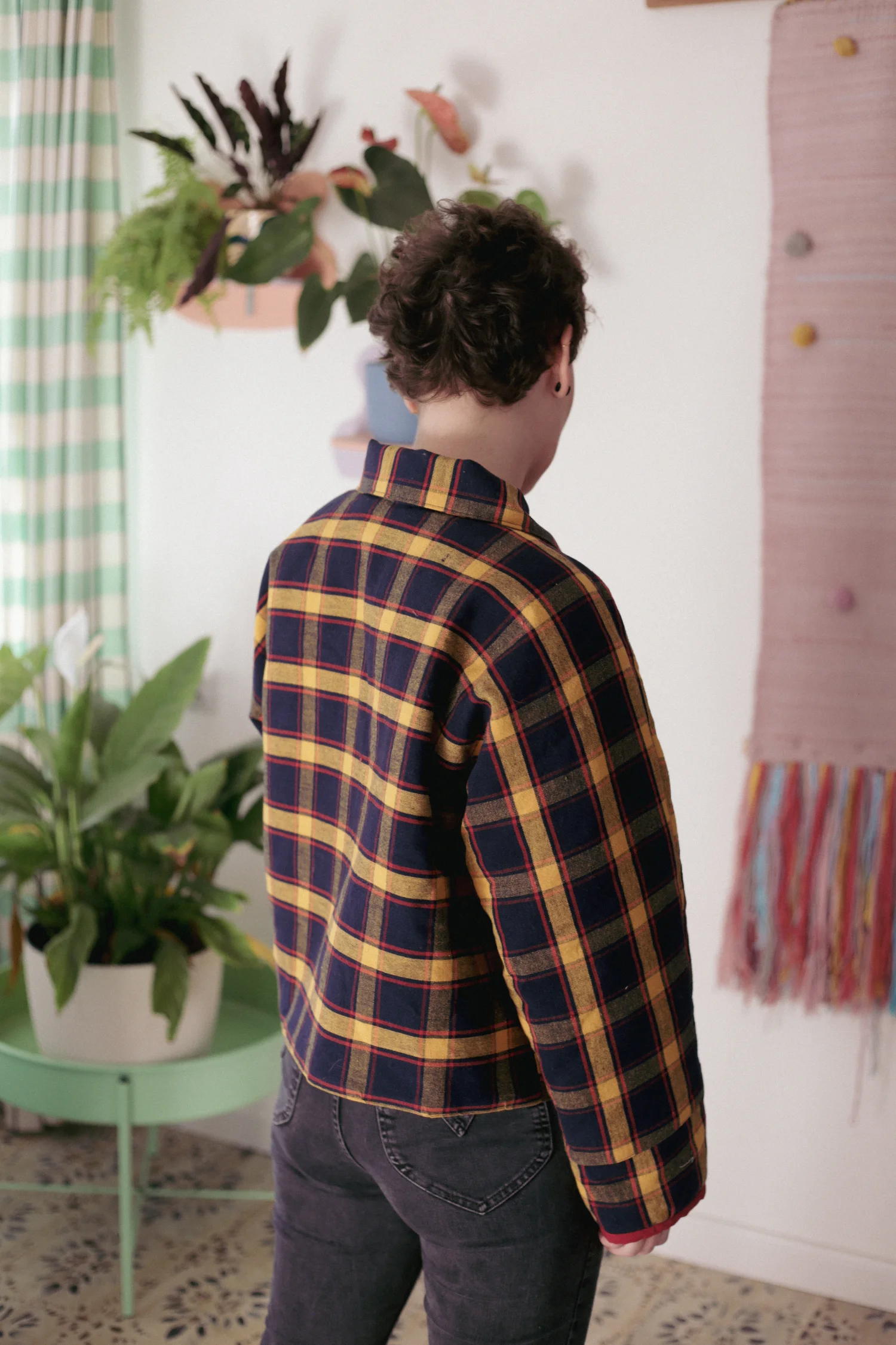 Kurtka z materiału z drugiego obiegu. Ma pikowaną podszewkę z lekką ociepliną. Pasuje zarówno na rozmiar S jako oversize oraz na L :)