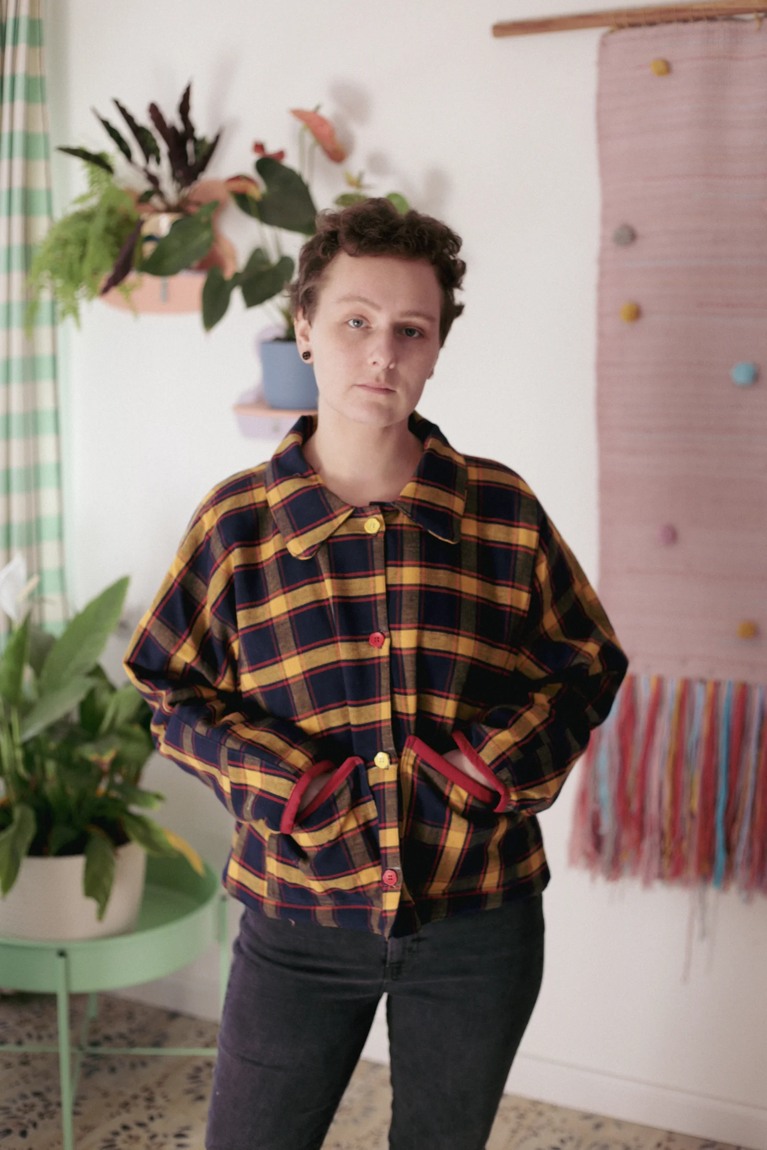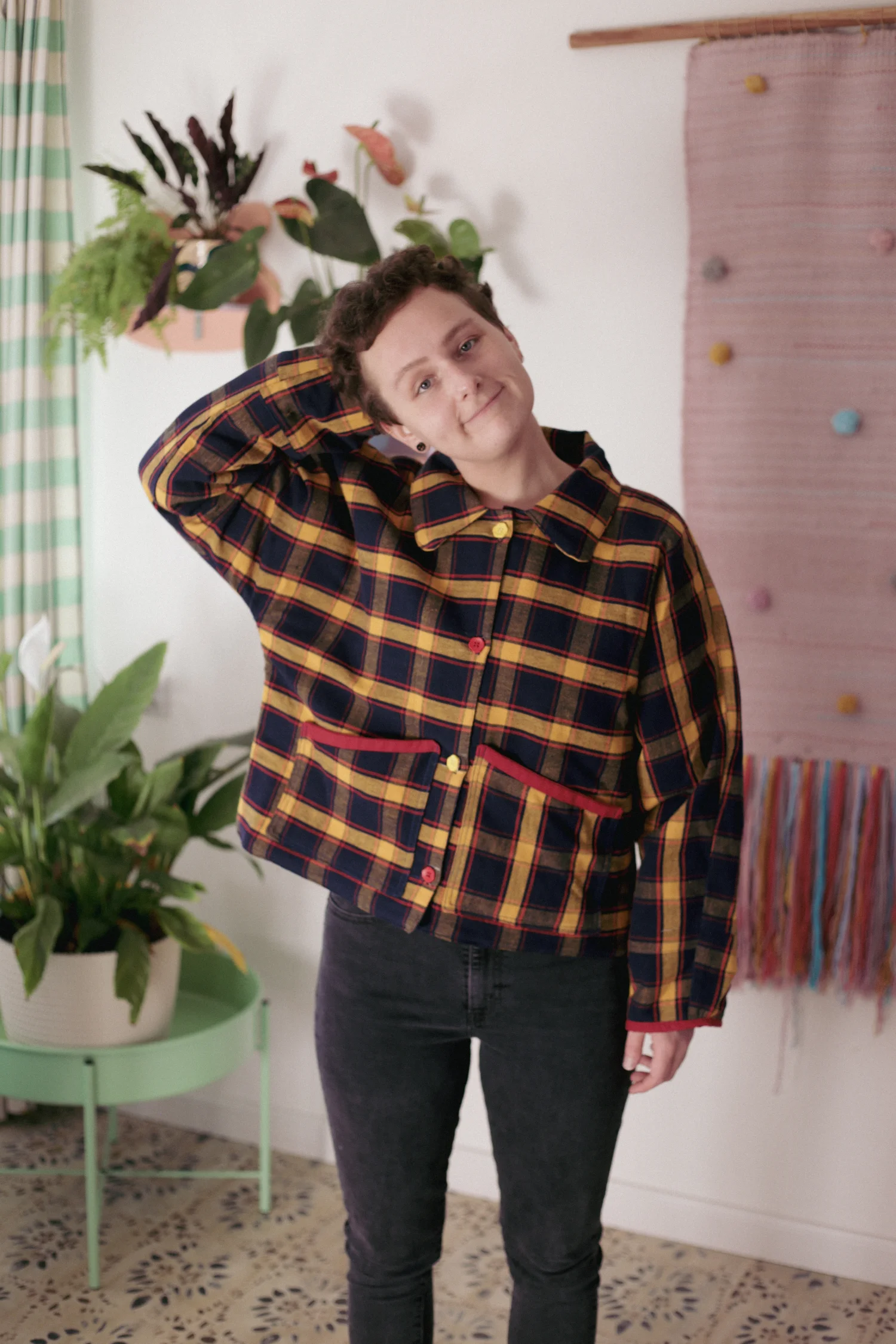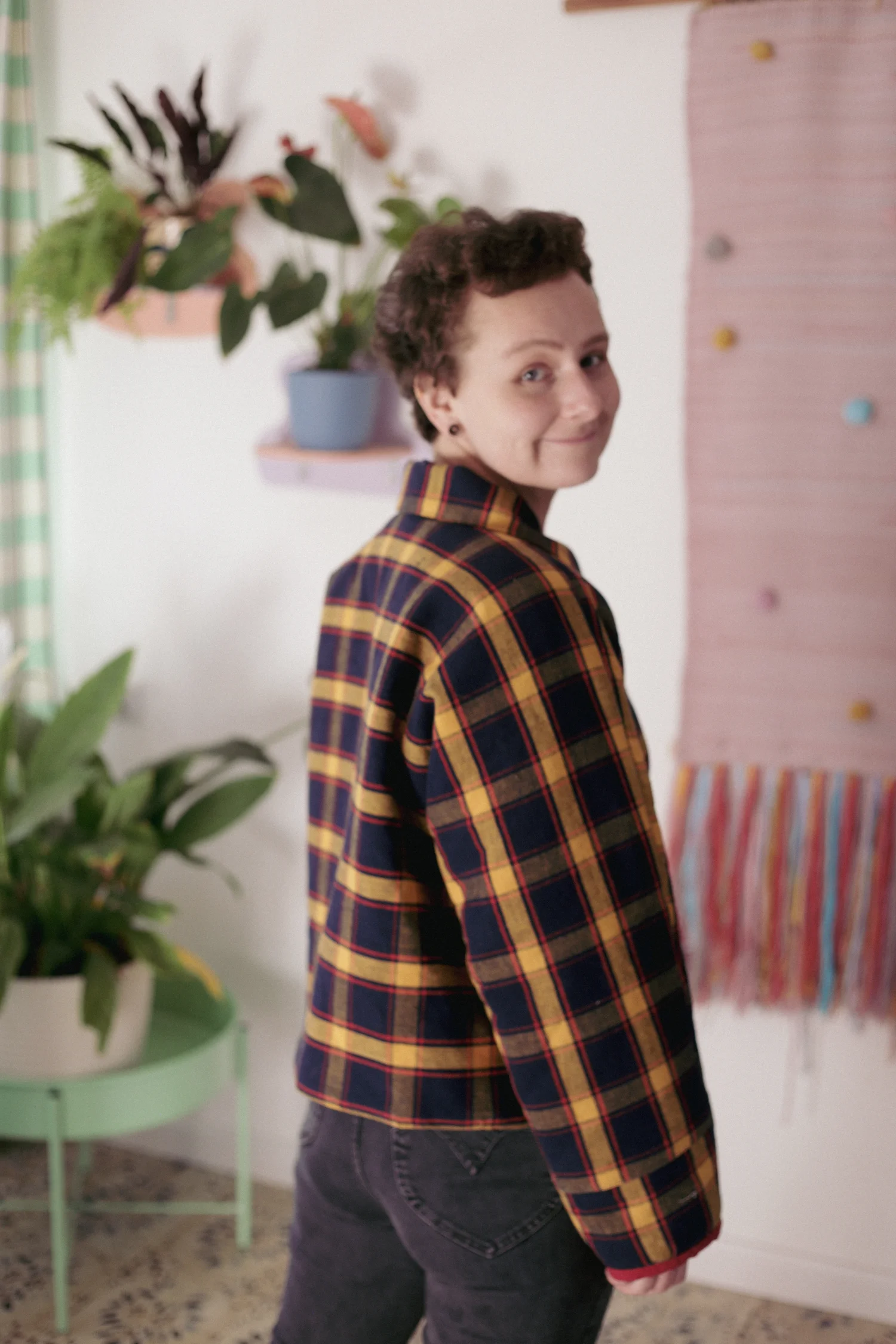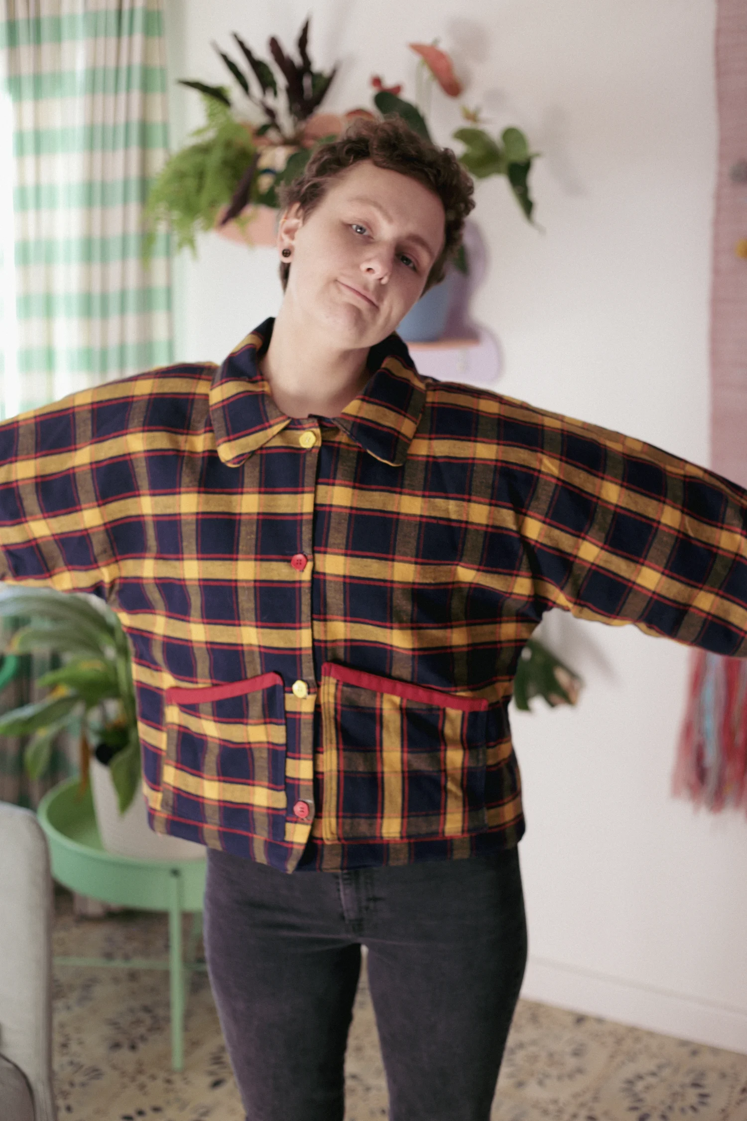 Kurtka z materiału z drugiego obiegu. Ma pikowaną podszewkę z lekką ociepliną. Pasuje zarówno na rozmiar S jako oversize oraz na L :)