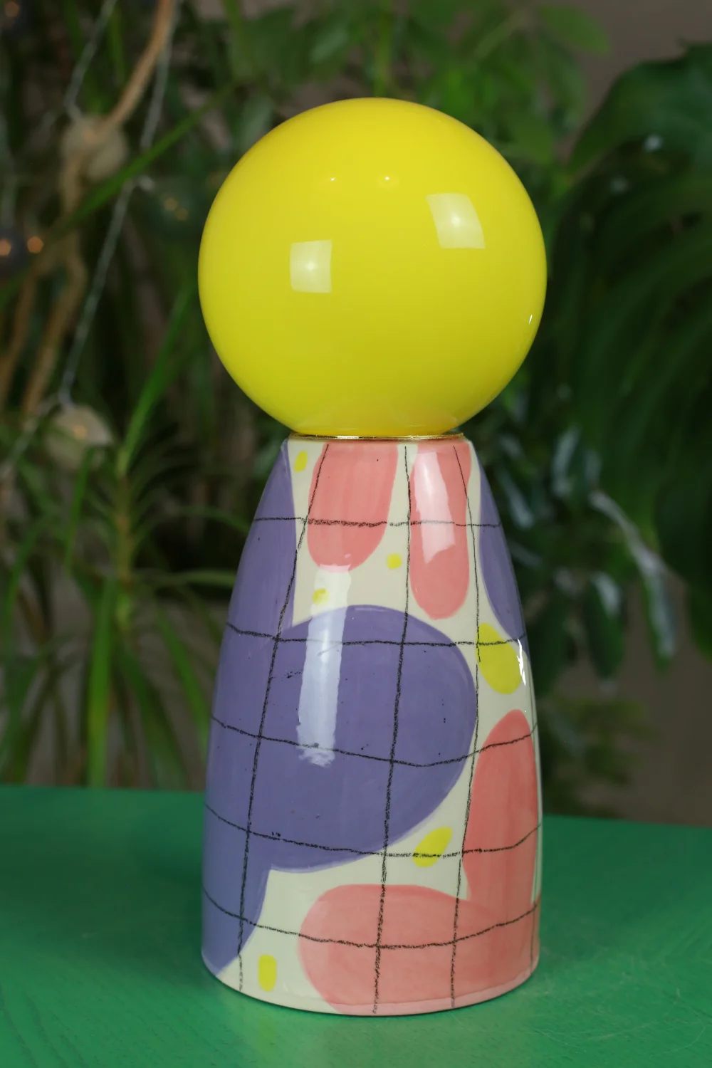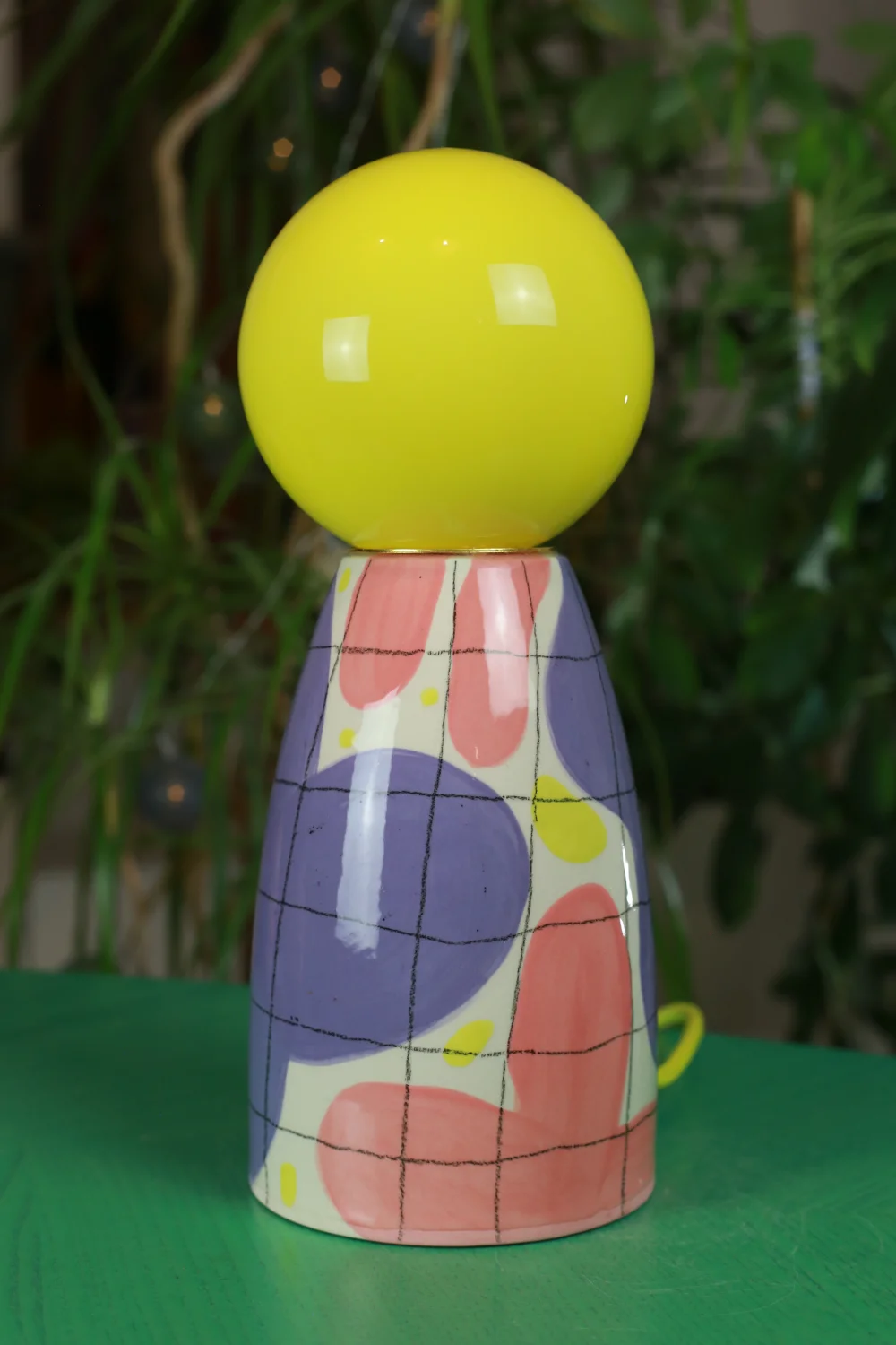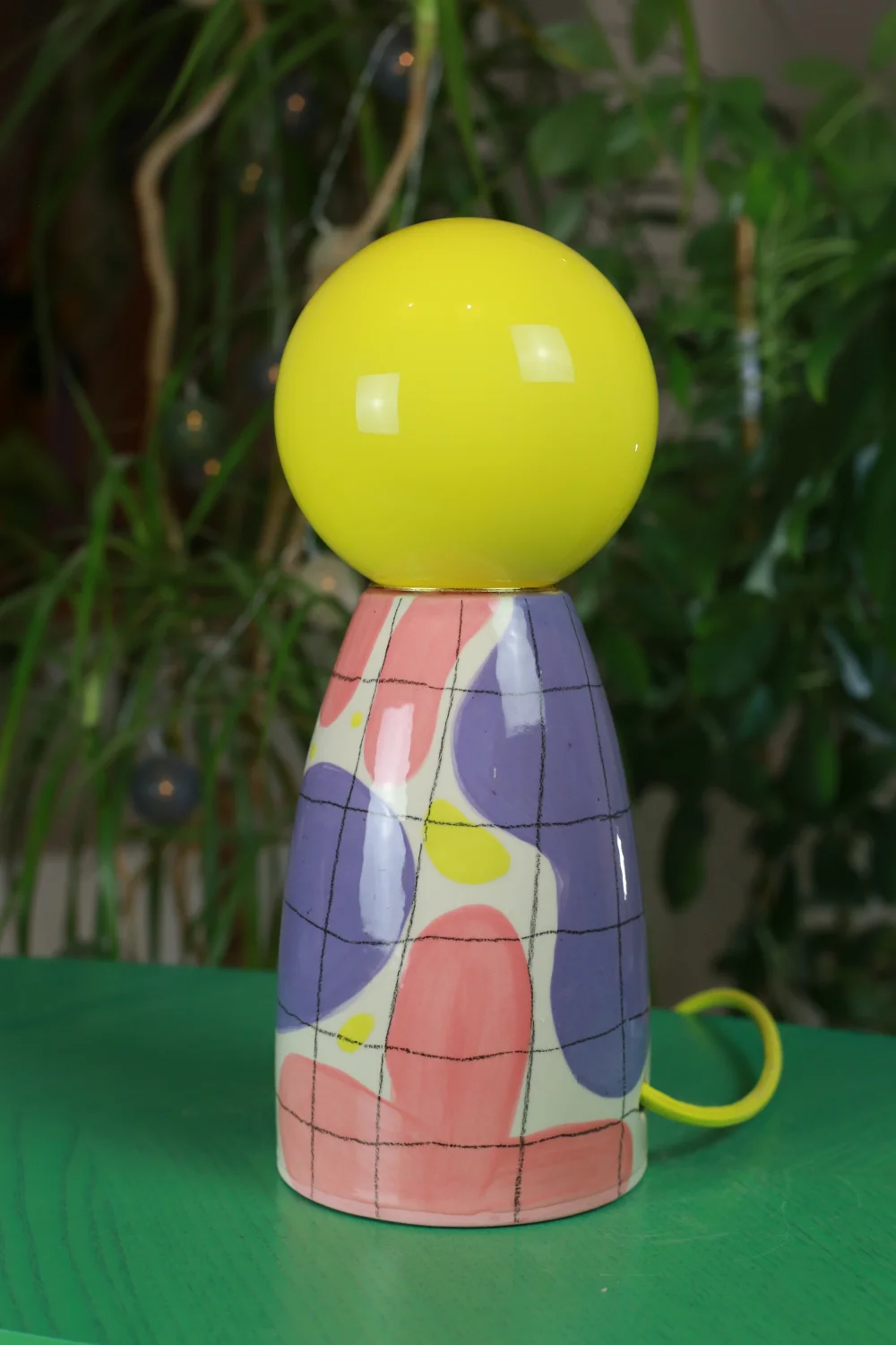 Ręcznie robiona, ceramiczna lampa w zestawie z żółtym, szklanym kloszem nasadzanym na oprawkę żarówki