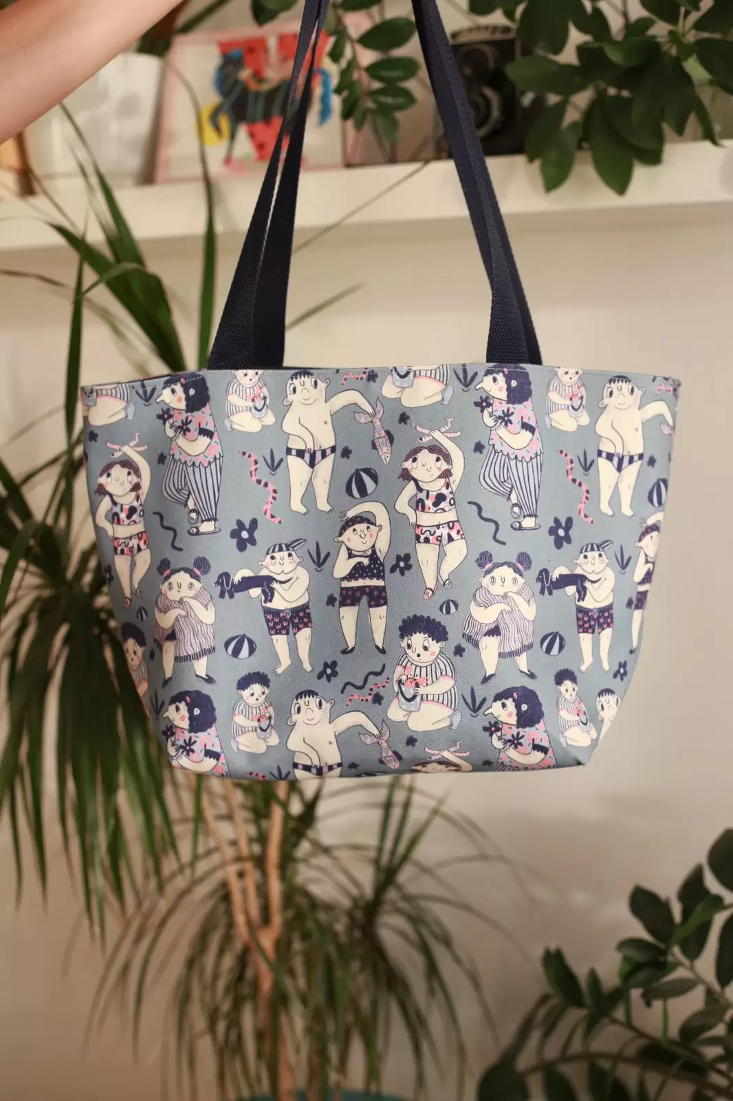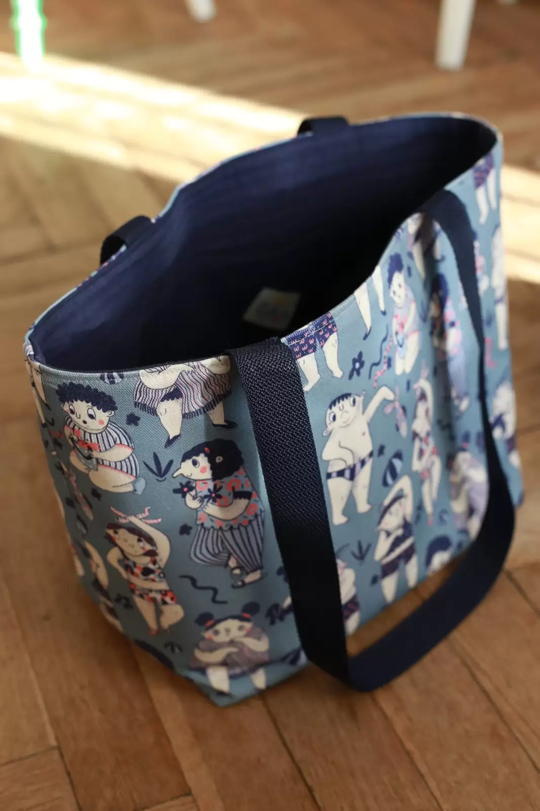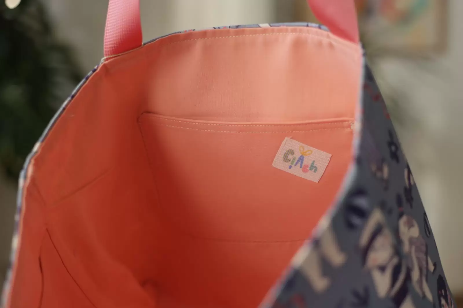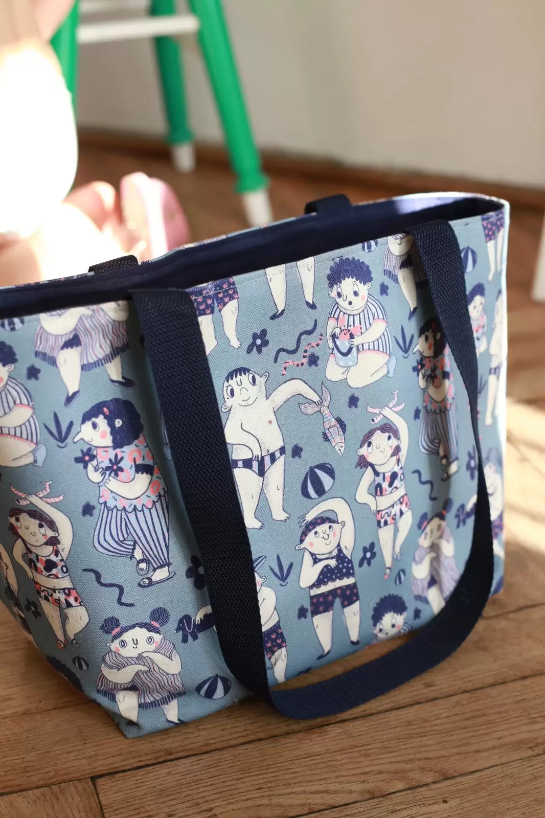 Torba szyta przez moją Mamę z wzorem mojego projektu z granatową podszewką. Ma w środku sporo kieszonek, które ułatwiają panowanie nad jej zawartością.