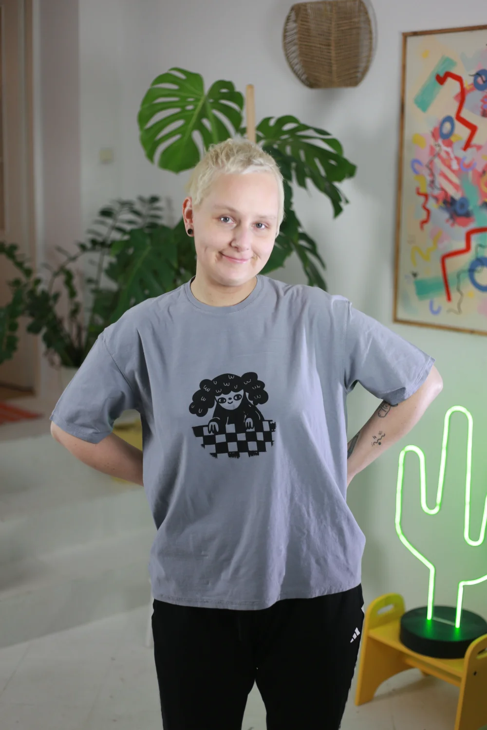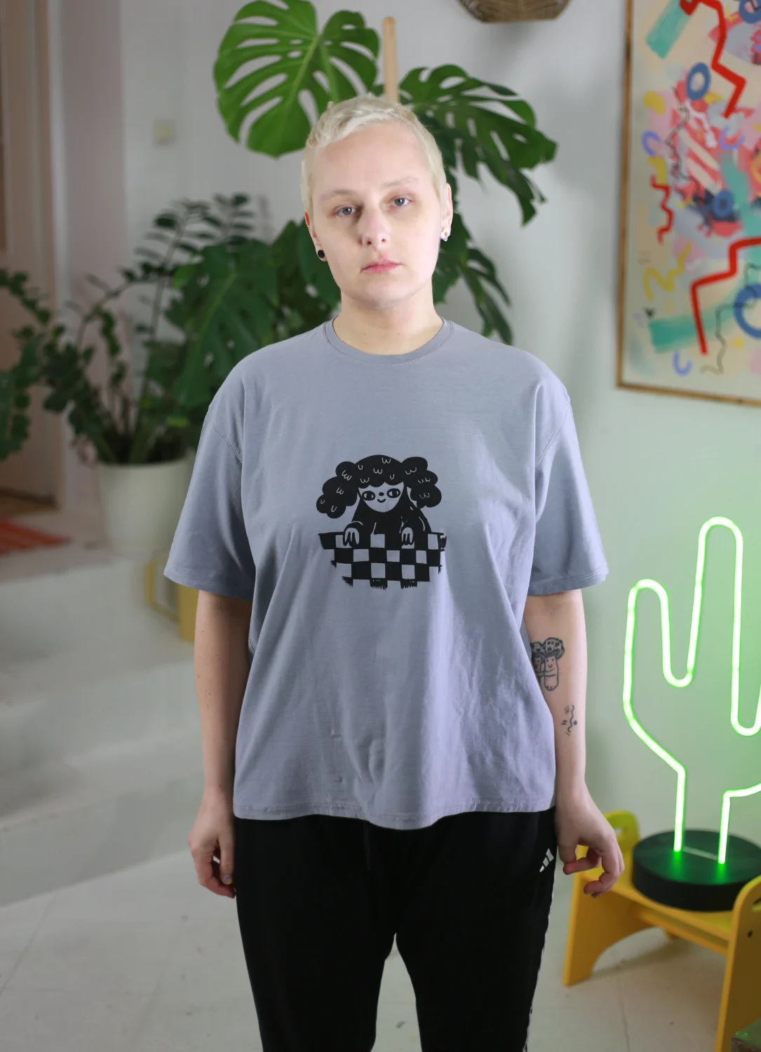 Koszulkę szyła moja mama a ja robiłam nadruk, więc jest gwarancja, że wszystko robimy same w polsce :) Żadna masówka.