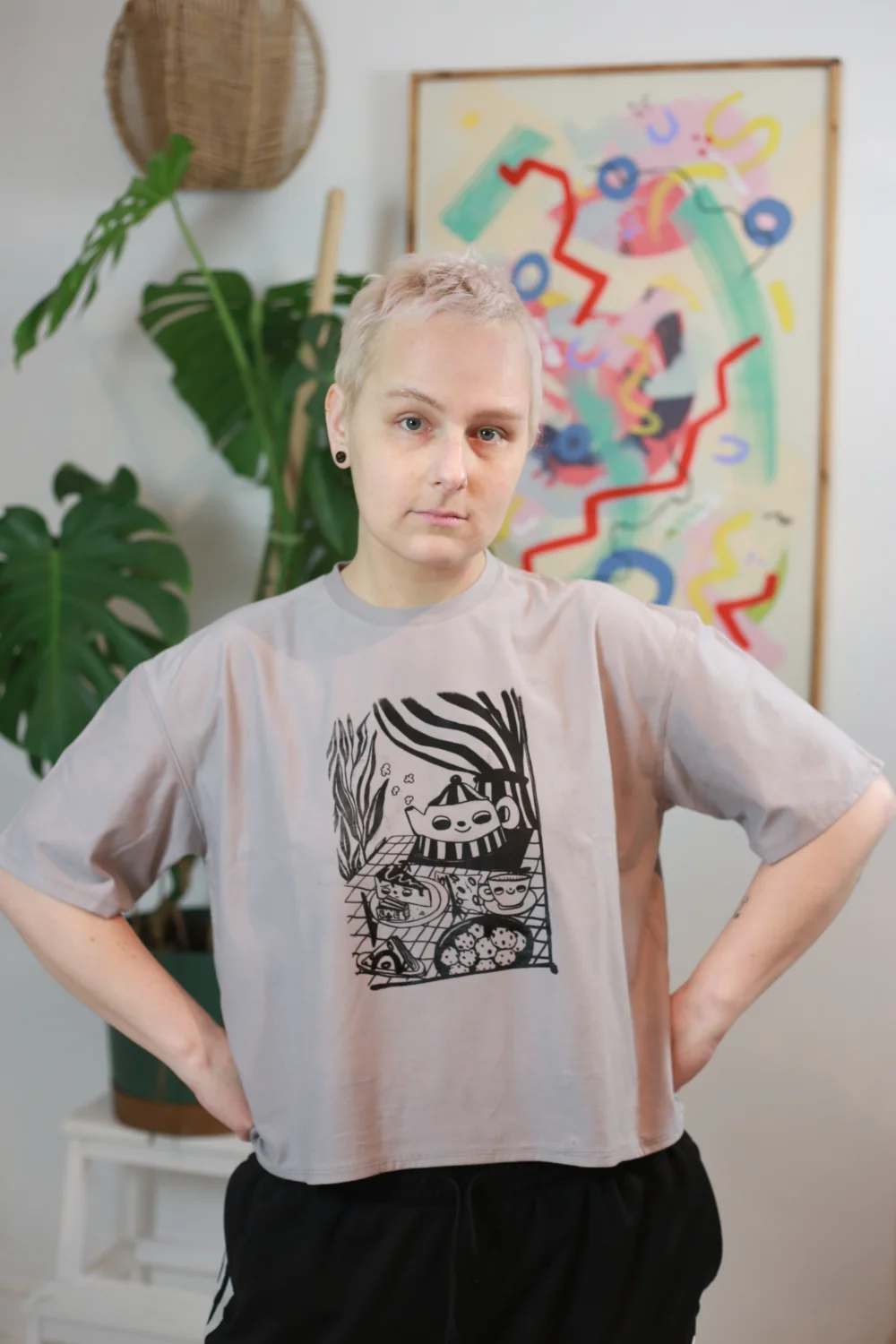 Koszulkę szyła moja mama a ja robiłam nadruk, więc jest gwarancja, że wszystko robimy same w polsce :) Żadna masówka.