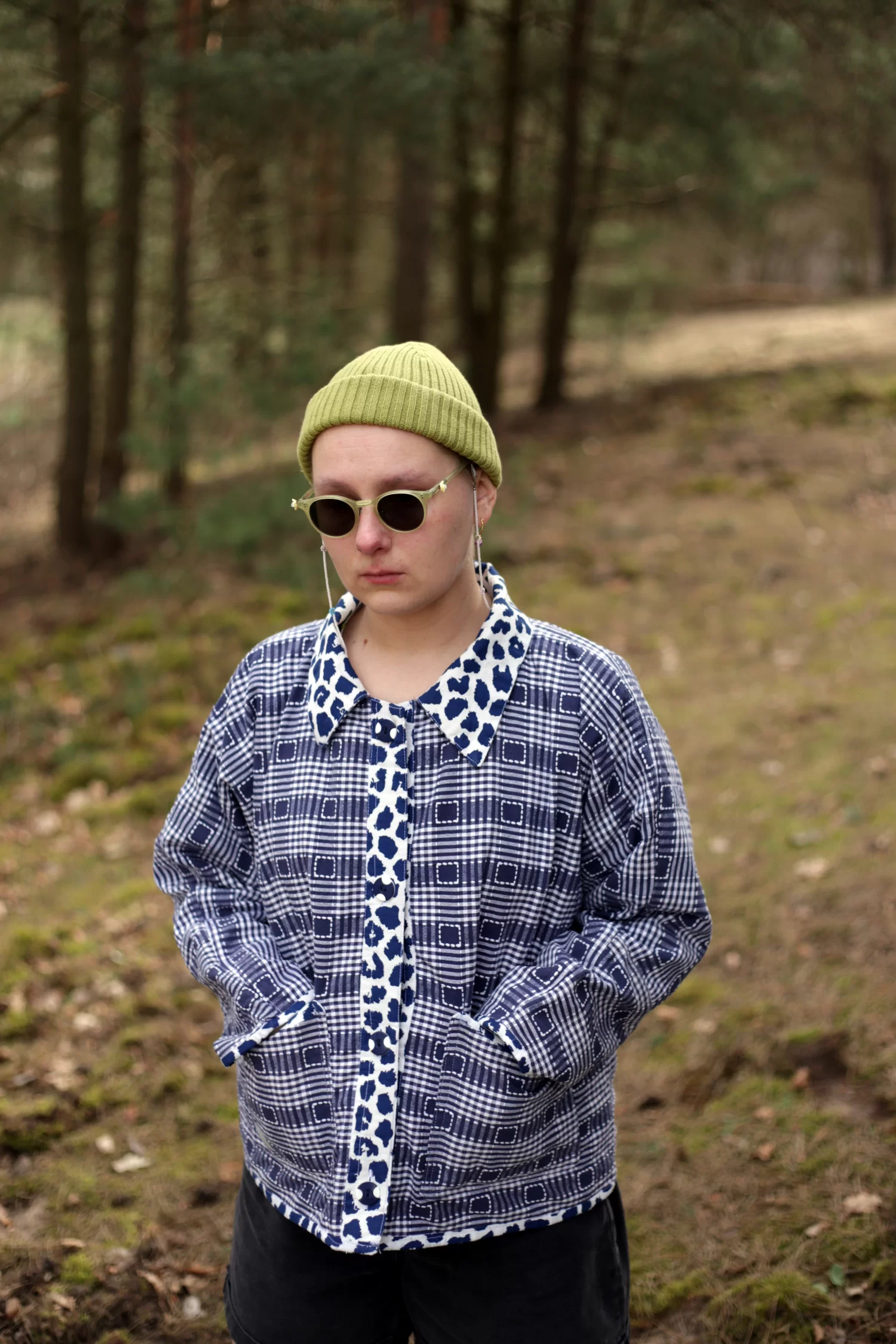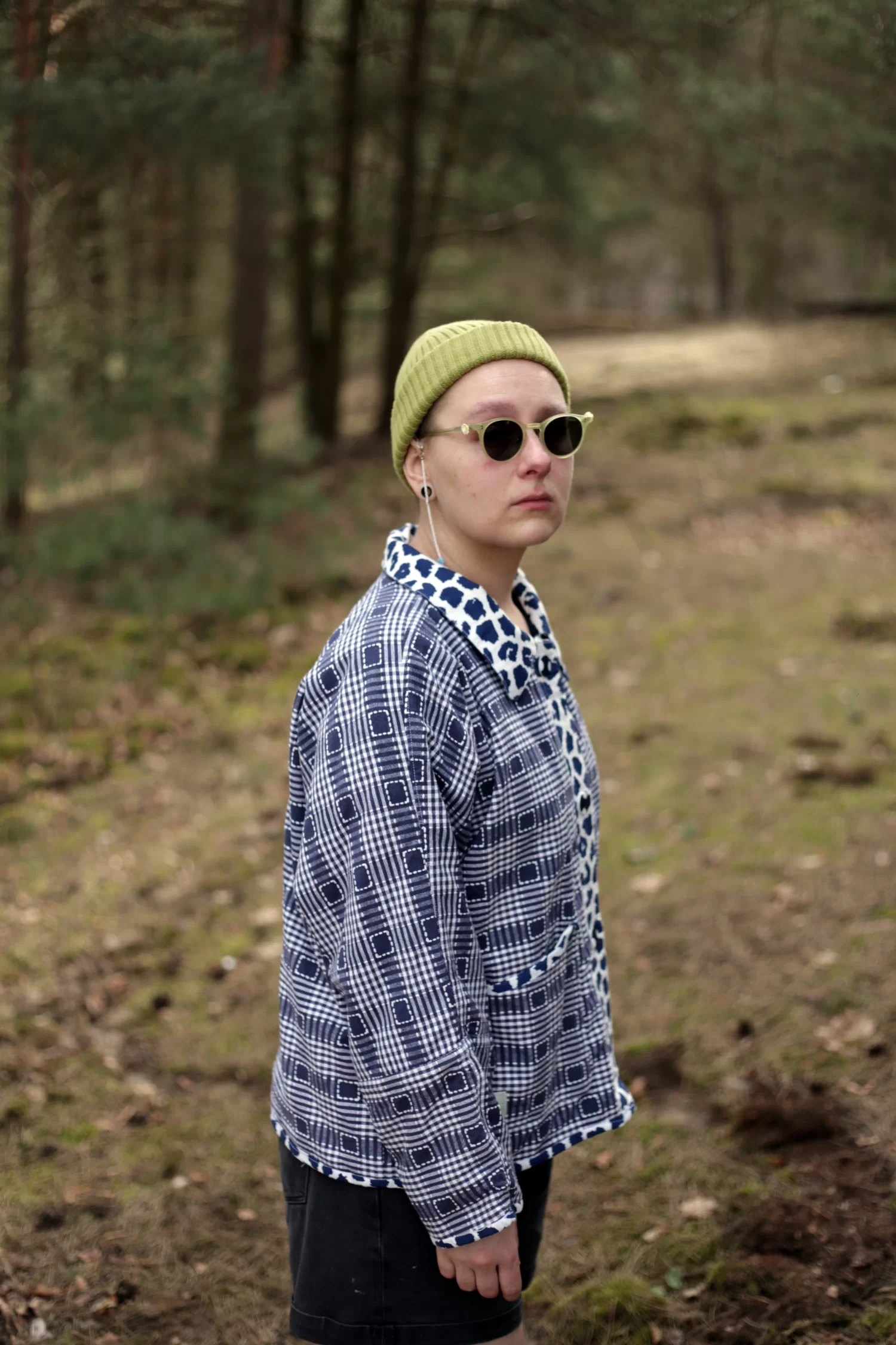 Kurtka z materiału z drugiego obiegu. Ma cienką, pikowaną podszewkę. Pasuje zarówno na rozmiar S jako oversize oraz na L :)