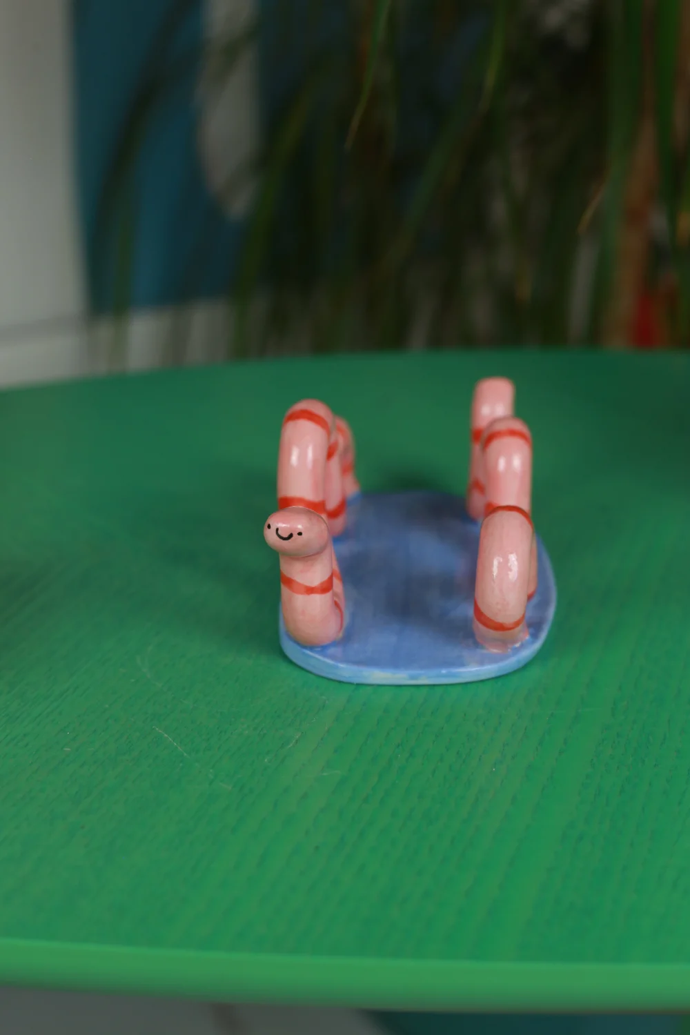 ręcznie robiona, ceramiczna figurka służąca jako "trzymak" na serwetki