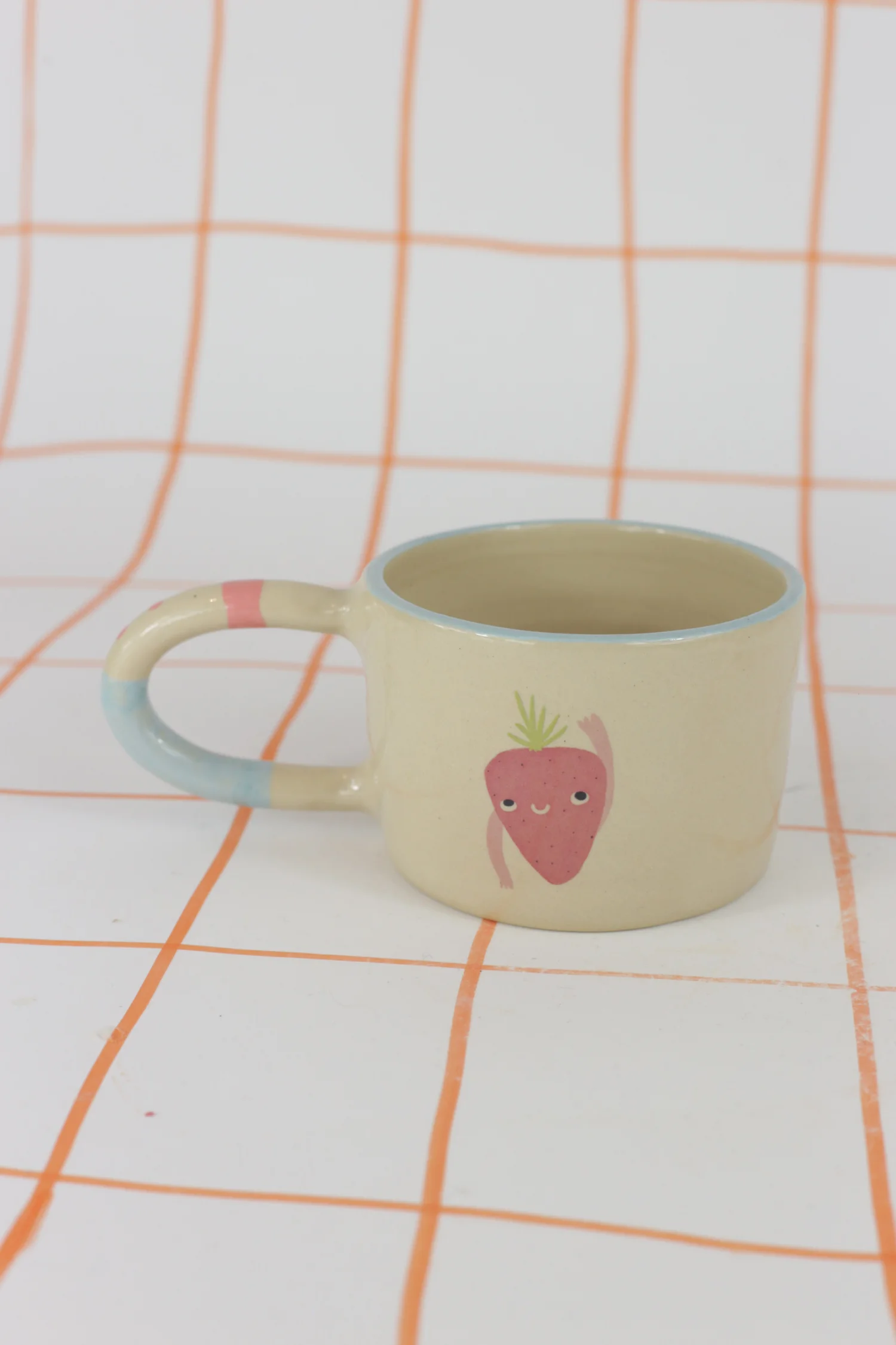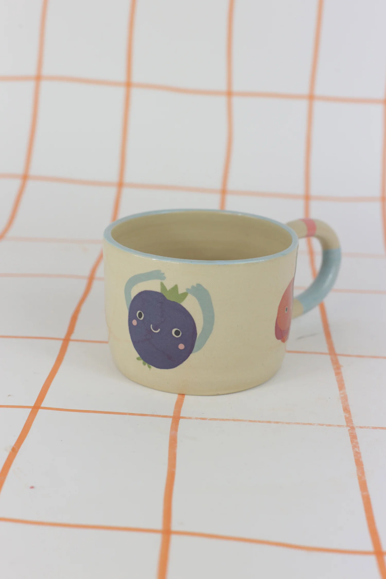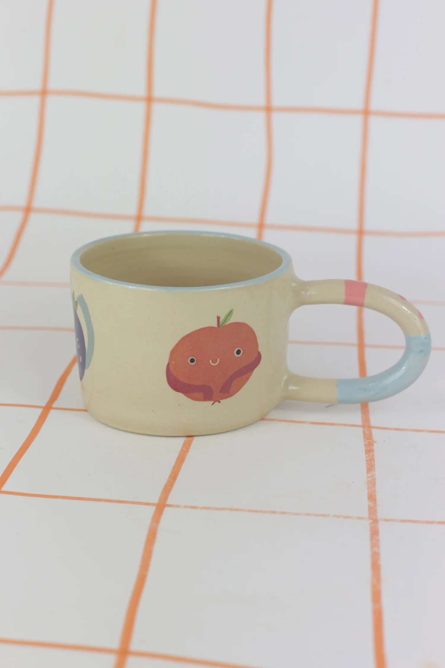 Kubek w owoce z błękitno różowym uchem 300ml