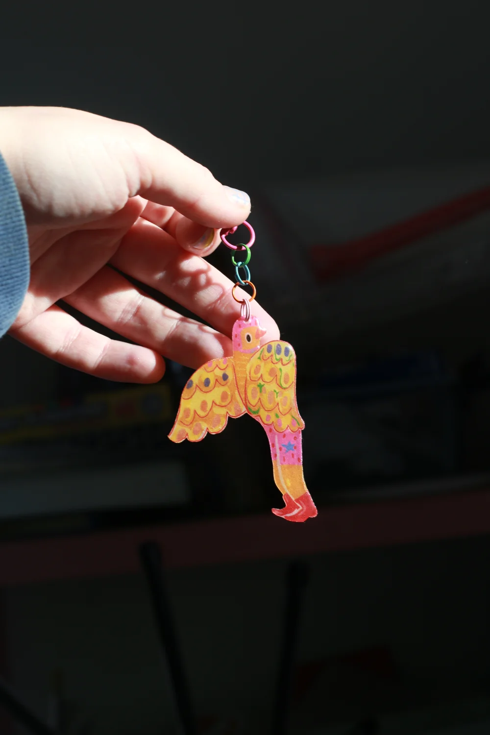 Breloczek z termokurczliwego plastiku, zabezpieczony żywicą UV.