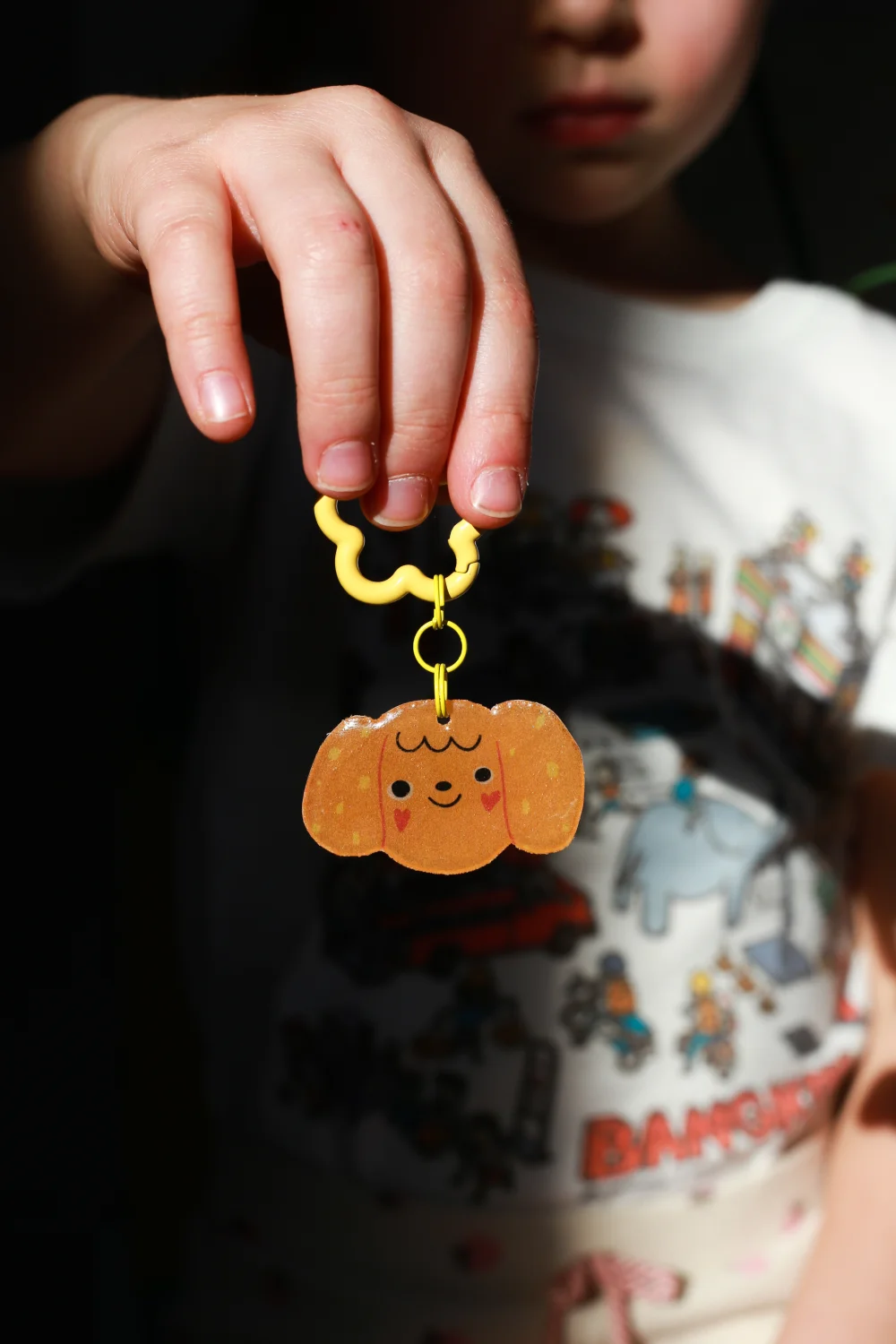 Breloczek z termokurczliwego plastiku, zabezpieczony żywicą UV.
