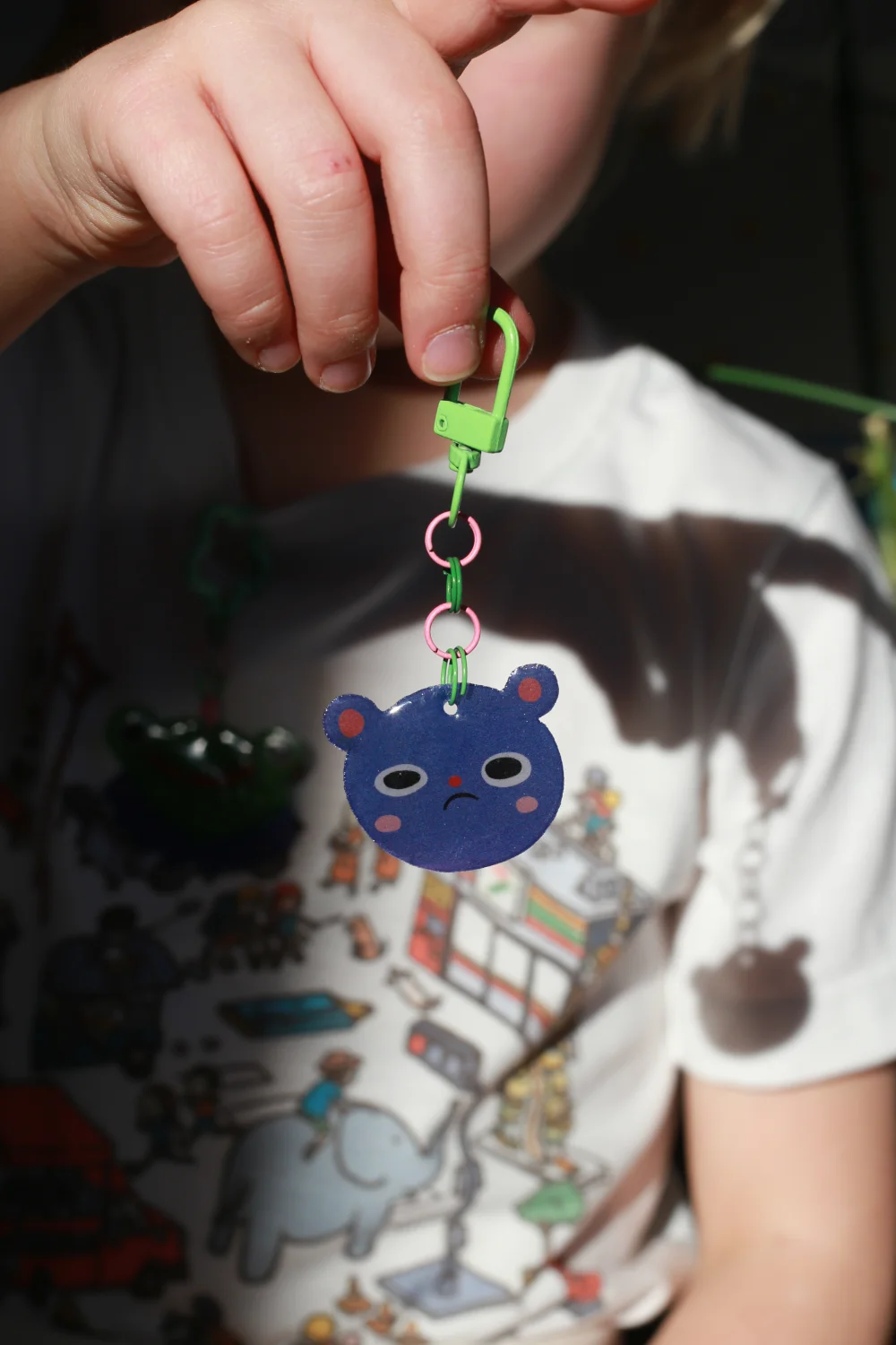 Breloczek z termokurczliwego plastiku, zabezpieczony żywicą UV.