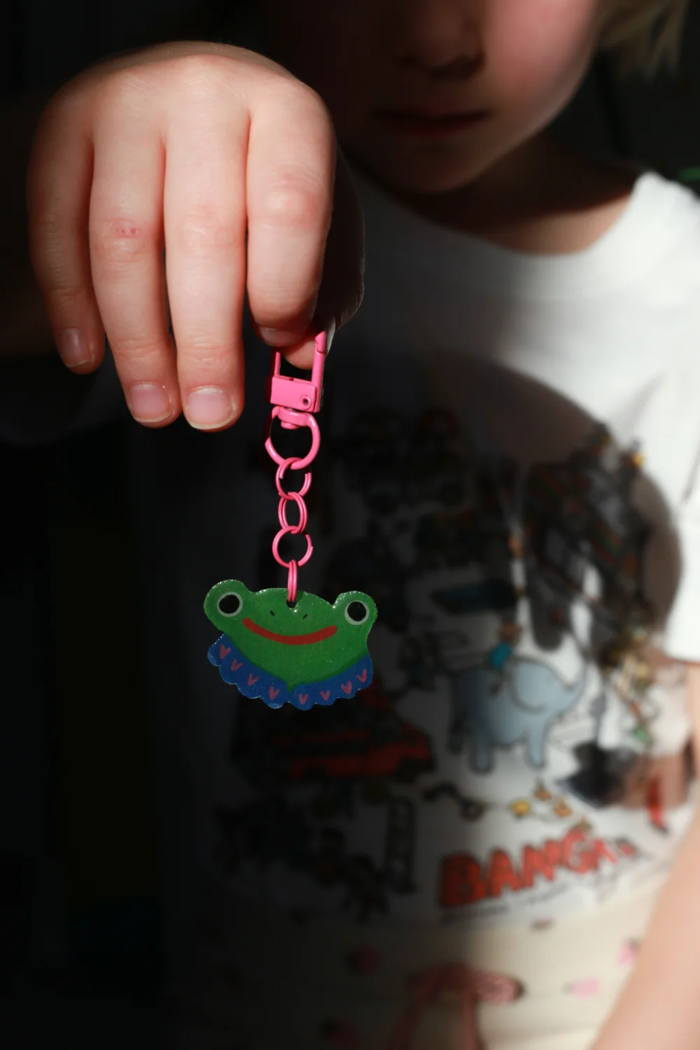 Breloczek z termokurczliwego plastiku, zabezpieczony żywicą UV.