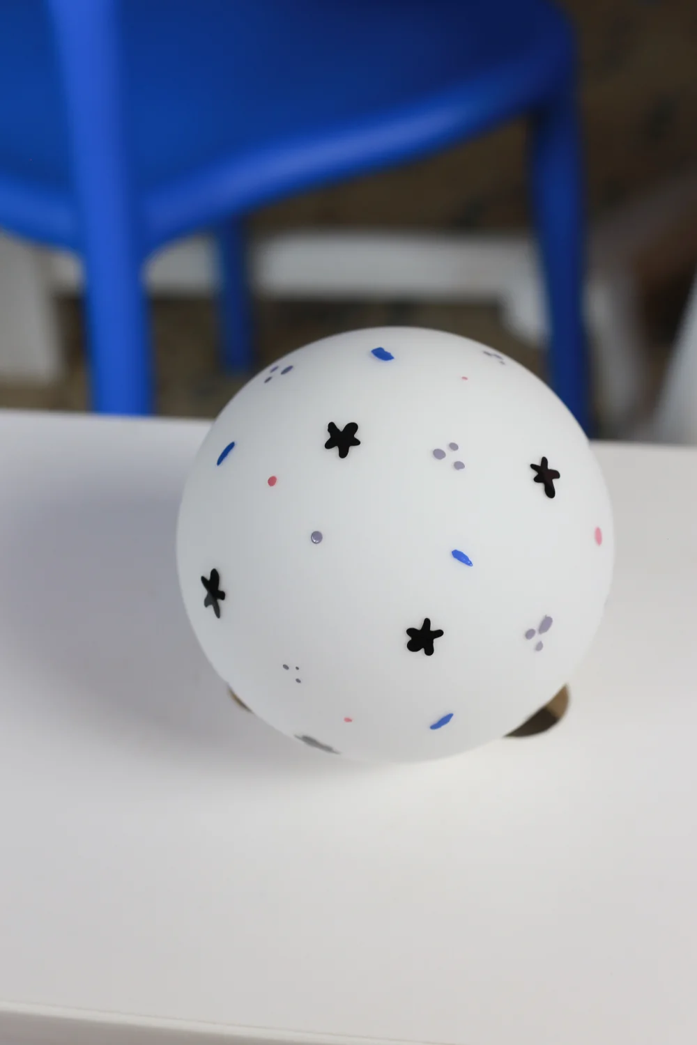Ręcznie malowany, szklany klosz w kształcie kuli. średnica 12cm. Nasadzany na oprawkę żarówki.